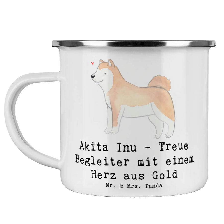 Die Camping Emaille Tasse mit dem süßen Akita Inu Motiv von Mr. & Mrs. Panda ist das perfekte Geschenk für Hunde- und Outdoor-Liebhaber! Diese Tasse vereint funktionales Design mit einem liebevollen und kreativen Motiv. Mit dem Slogan "Akita Inu - Treue Begleiter mit einem Herz aus Gold" zeigt sie nicht nur die Liebe zu dieser besonderen Hunderasse, sondern auch die Verbundenheit zu unseren vierbeinigen Freunden.