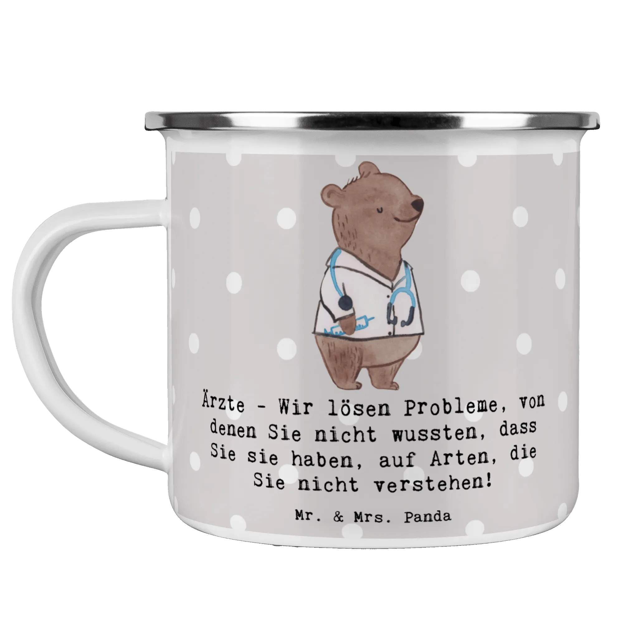 Entdecke die kreative Berufe Kollektion von Mr. & Mrs. Panda und finde das perfekte Accessoire, das die Leidenschaft für deinen Job widerspiegelt. Ob für dich selbst oder als liebevolles Geschenk – diese Camping Emaille Tasse ist ein absolutes Must-Have für jeden Arzt!