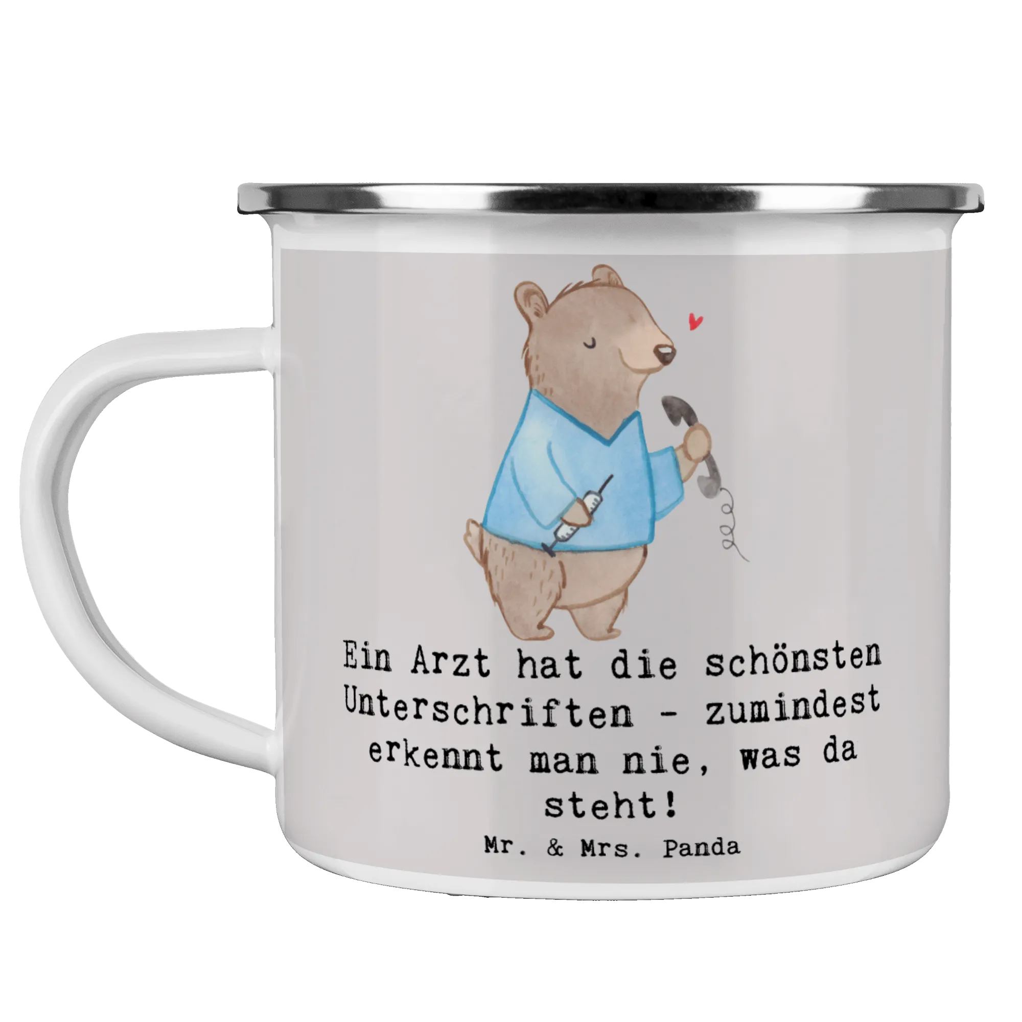 Du bist auf der Suche nach dem perfekten Geschenk für einen Arzt oder einen Medizinstudenten? Unsere Camping Emaille Tasse mit dem süßen Motto "Ein Arzt hat die schönsten Unterschriften - zumindest erkennt man nie, was da steht!" ist eine wunderbare Wahl! Diese Tasse ist nicht nur funktional, sondern auch ein echter Blickfang.