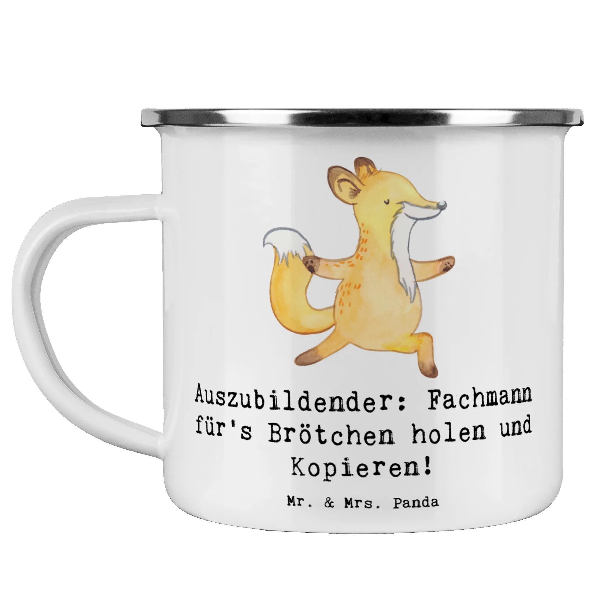 Die Camping Emaille Tasse "Auszubildender" von Mr. & Mrs. Panda ist das perfekte Geschenk für alle angehenden Fachkräfte, die ihre ersten Schritte ins Berufsleben wagen. Diese charmante Tasse zeigt stolz den Spruch "Auszubildender: Fachmann für's Brötchen holen und Kopieren!" und bringt damit nicht nur ein Lächeln ins Gesicht, sondern auch eine Portion Motivation für alle, die in die Berufswelt eintauchen.