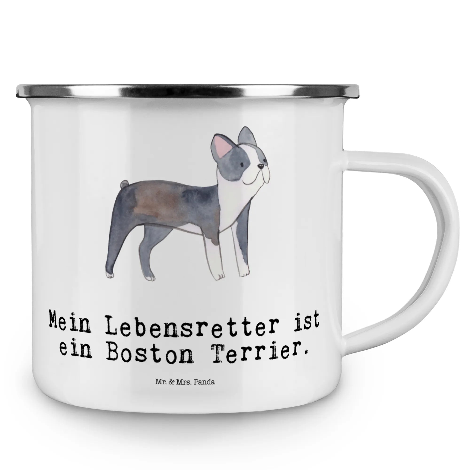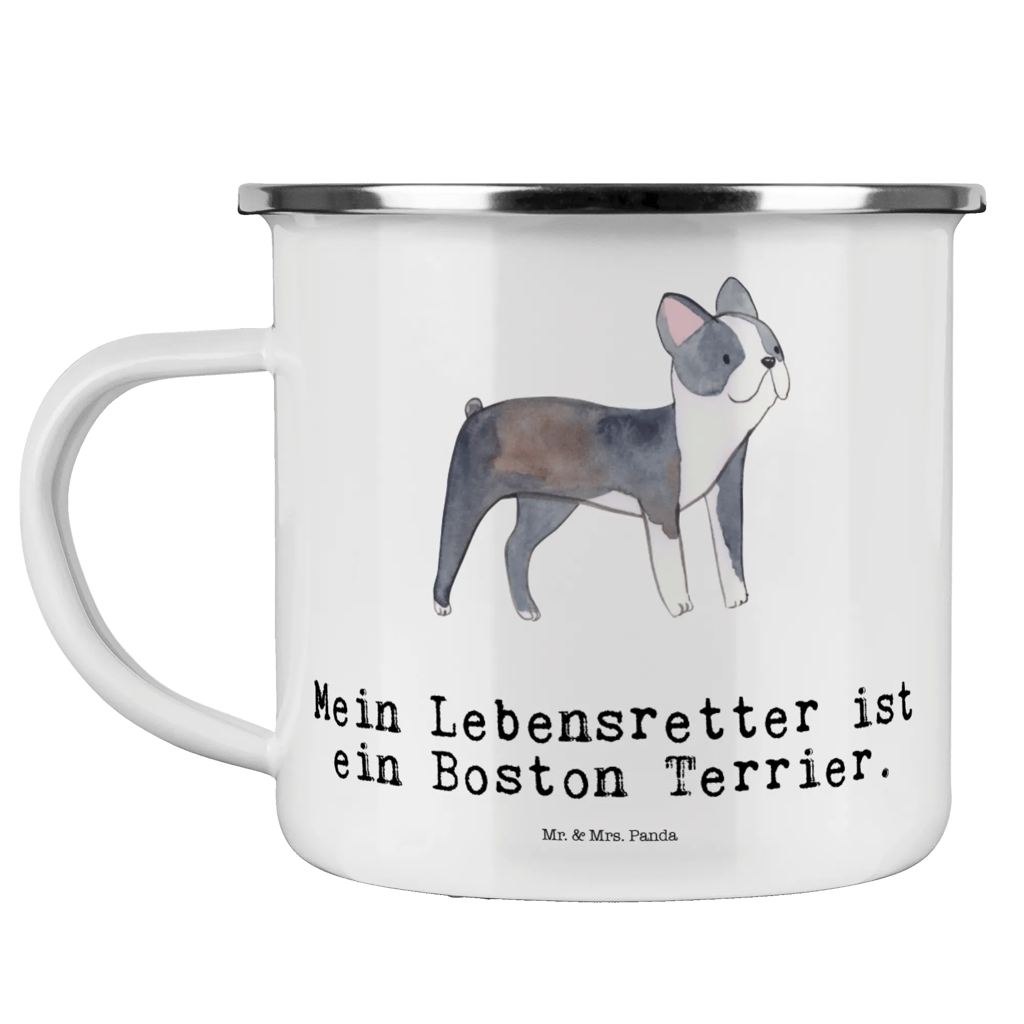 Camping Emaille Tasse Boston Terrier Lebensretter
