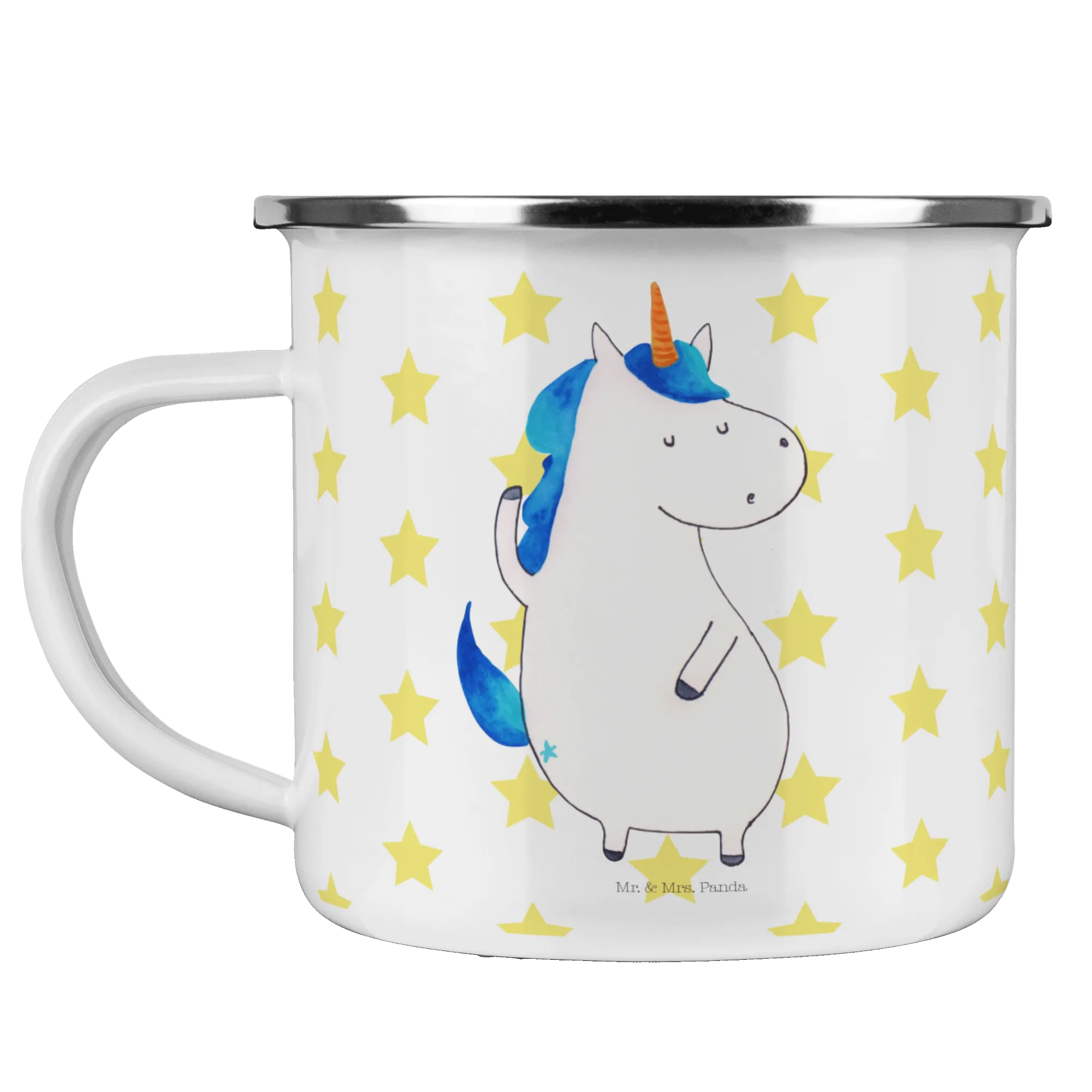 Die Camping Emaille Tasse Einhorn Mann von Mr. & Mrs. Panda ist nicht nur ein praktischer Begleiter für deine Abenteuer im Freien, sondern auch ein ganz besonderes Geschenk für alle Einhorn-Fans!