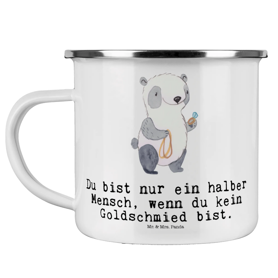 Sie steht für besondere Momente und Erinnerungen, die jeder Goldschmied mit einem warmen Getränk in der Hand genießen kann. Alternativ ist die Tasse auch perfekt für alle, die das Handwerk des Goldschmiedens lieben oder einfach nur gerne sammeln. Pflegeleicht, langlebig und mit einem Hauch von Niedlichkeit – das ist die Camping Emaille Tasse von Mr. & Mrs. Panda. An jedem Ort, zu jeder Zeit, bringe Freude und ein wenig Panda-Liebe mit. Let’s go campen! Oder schau einfach mal bei Mr. & Mrs. Panda vorbei, um weitere süße Geschenke zu entdecken.