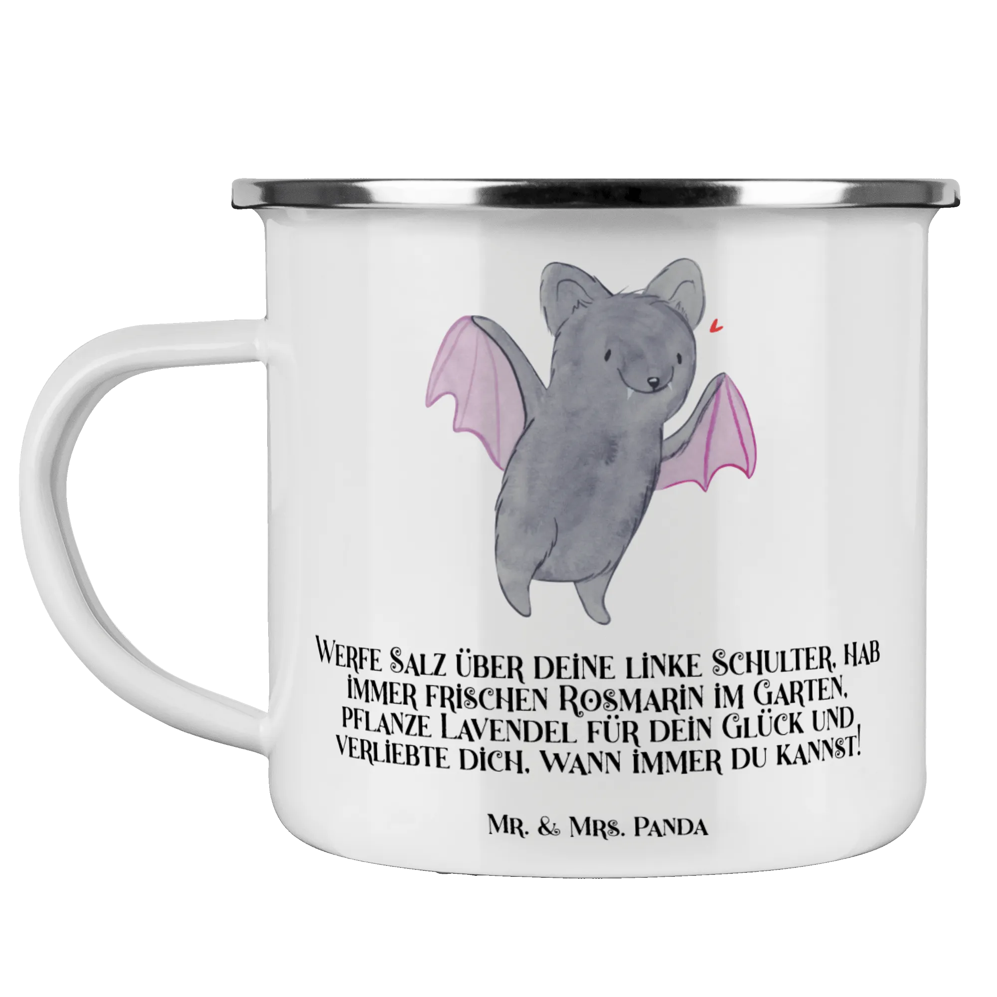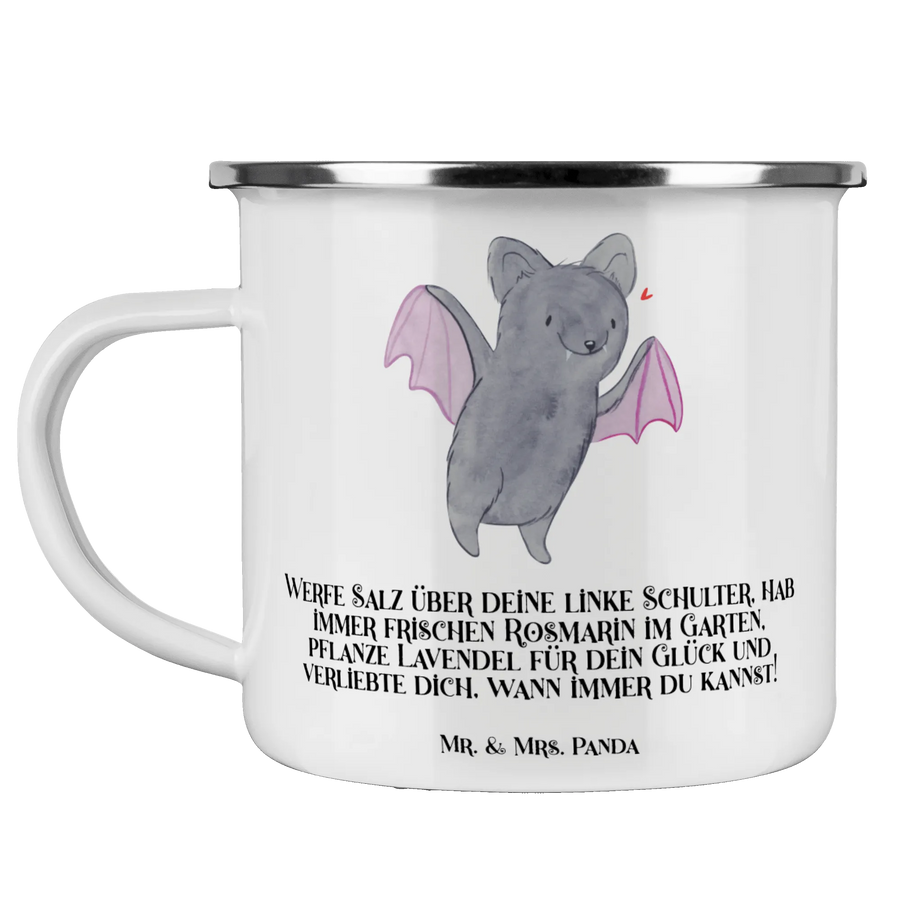 Die Camping Emaille Tasse von Mr. & Mrs. Panda ist der perfekte Begleiter für all deine Outdoor-Abenteuer, besonders in der schaurig-schönen Zeit von Halloween! Mit ihrem einzigartigen und liebevoll gestalteten Motiv bringt sie einen Hauch von Magie und Grusel in dein Camping-Erlebnis.