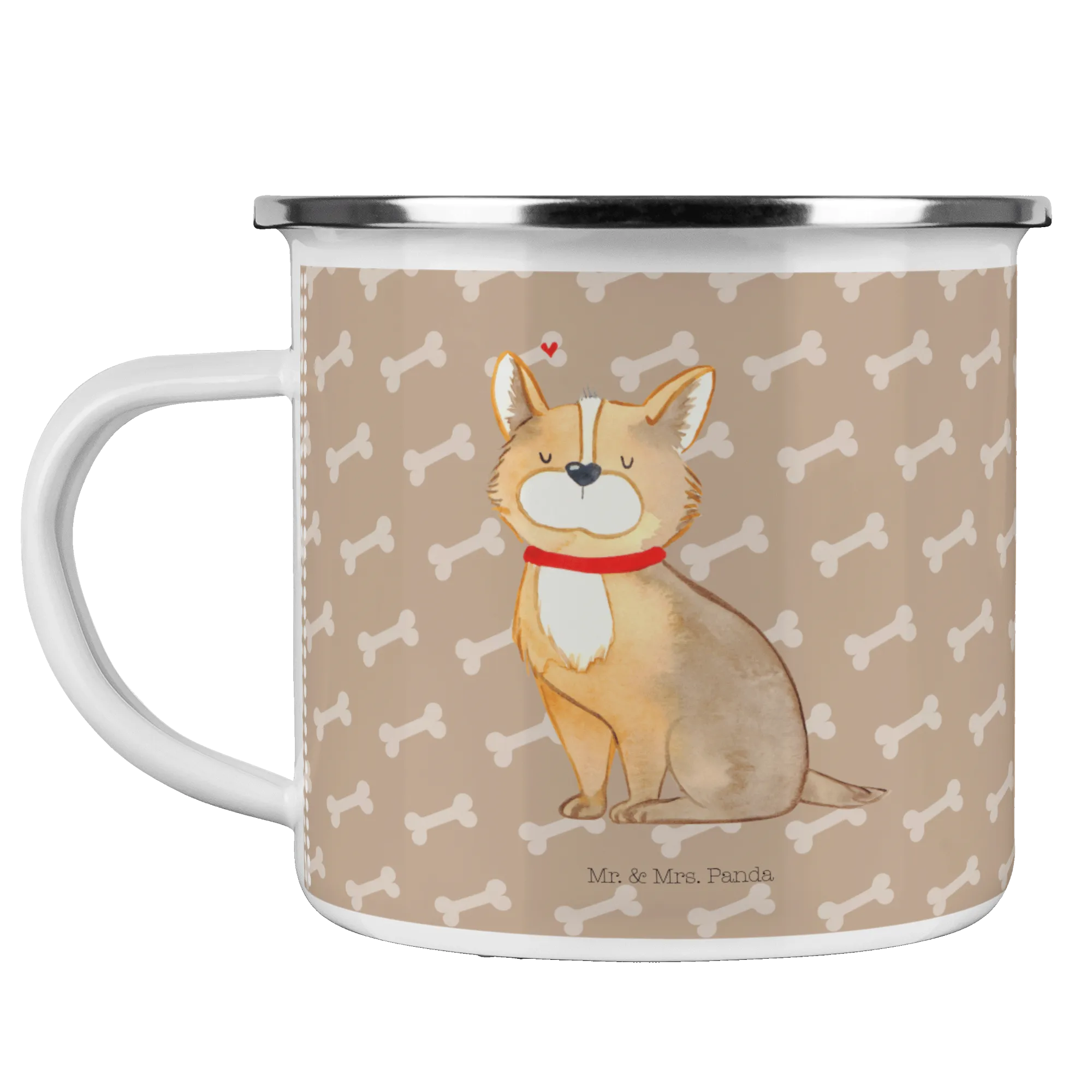 Entdecke die perfekte Camping Emaille Tasse mit dem liebevollen Motiv Hundeglück von Mr. & Mrs. Panda. Diese Tasse bringt Freude und Gemütlichkeit in jede Outdoor-Aktivität. Sie ist nicht nur praktisch, sondern auch ein echter Hingucker für jeden Hundeliebhaber.