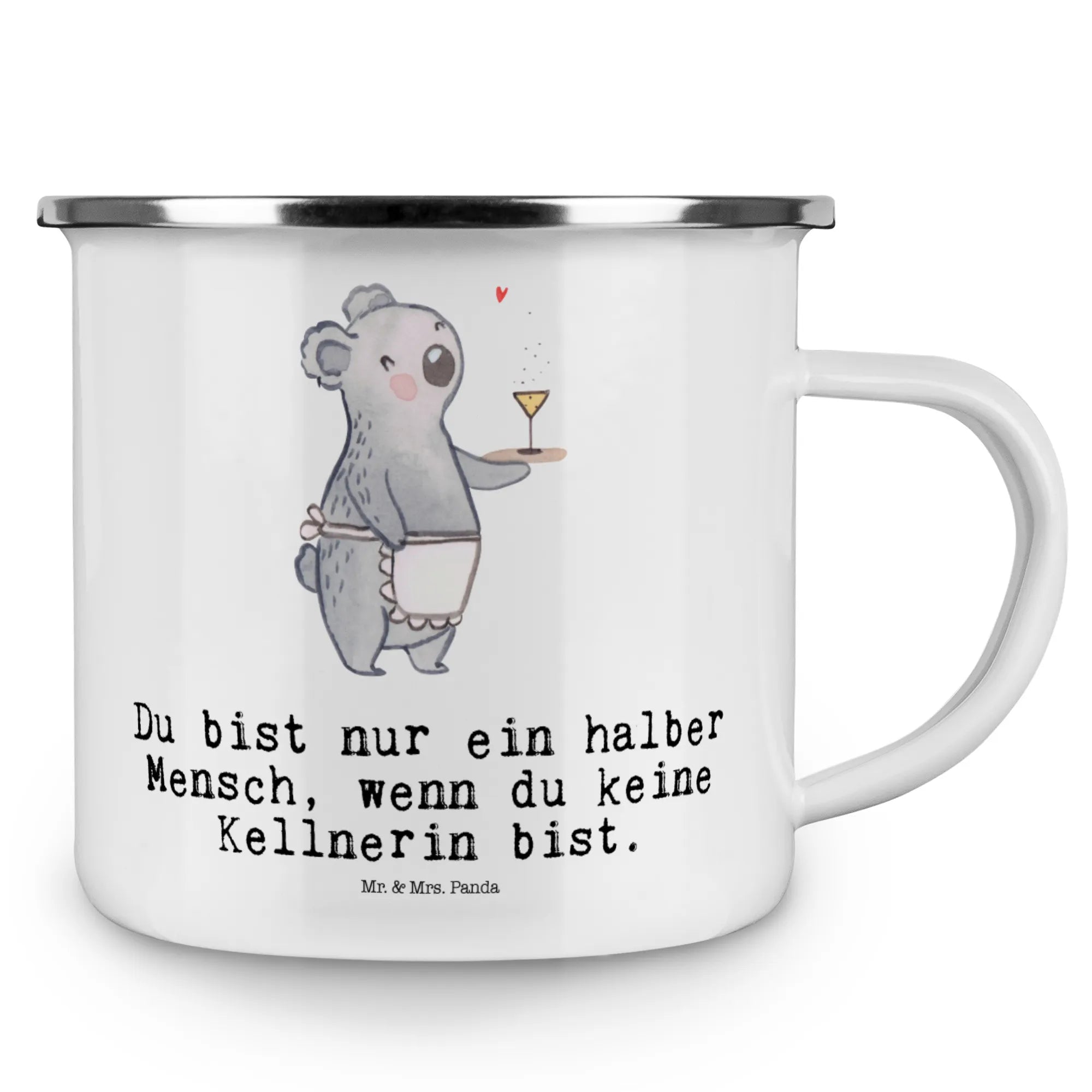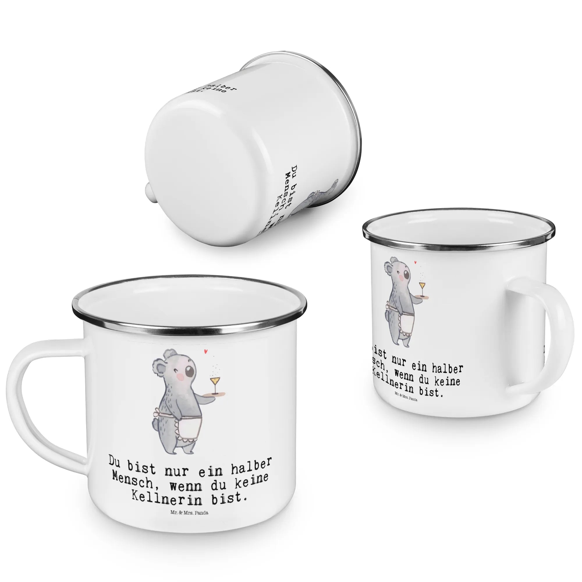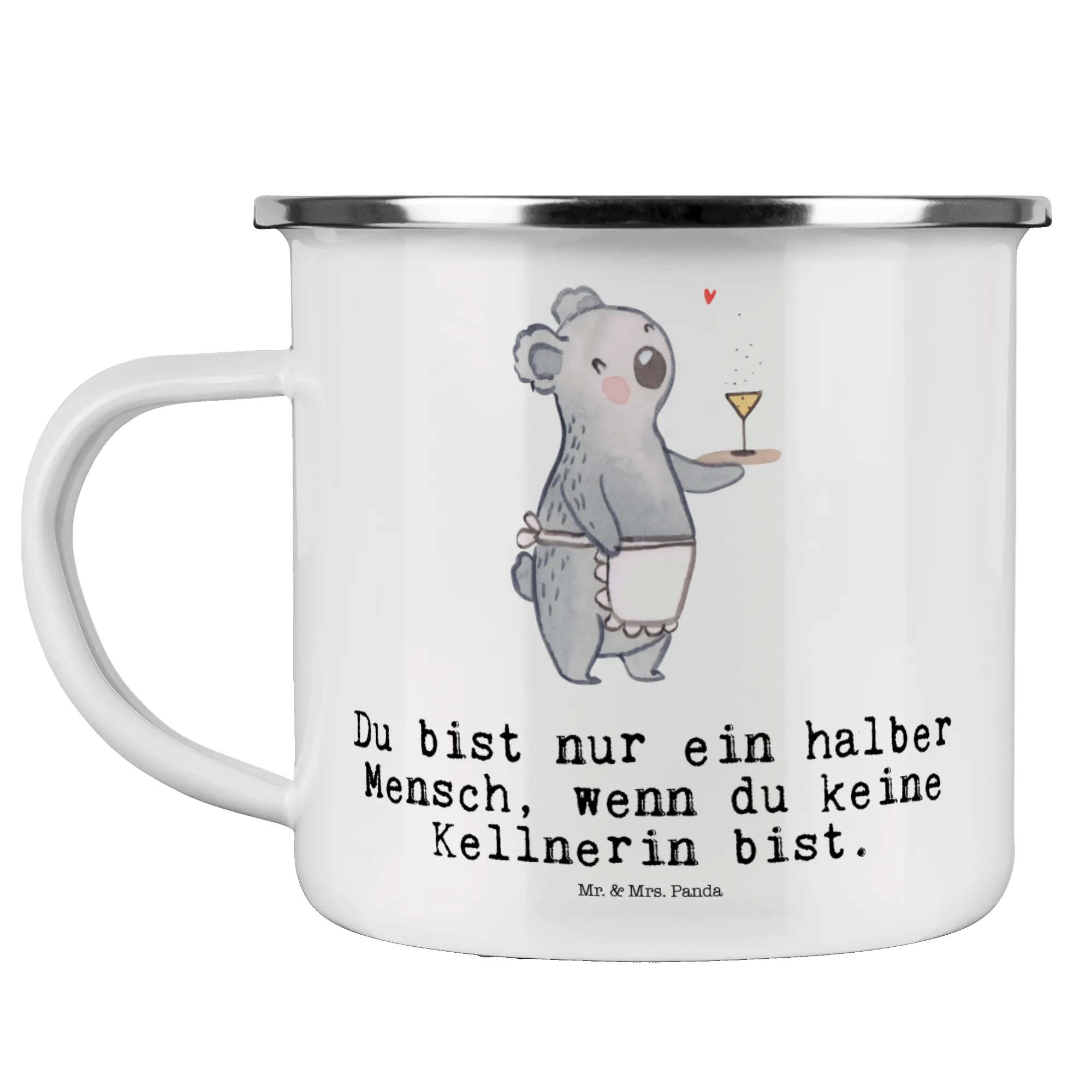 Die Camping Emaille Tasse "Kellnerin mit Herz" von Mr. & Mrs. Panda ist das perfekte Geschenk für jeden, der mit Herz und Leidenschaft im Service tätig ist. Ob zum Jobbeginn, als kleines Dankeschön zwischendurch oder als Abschiedsgeschenk – dieser robuste und gleichzeitig elegante Trinkbecher ist für jeden Anlass geeignet. Hergestellt aus kratzfester und korrosionsbeständiger Emaille, garantiert diese Tasse Langlebigkeit und Funktionalität.