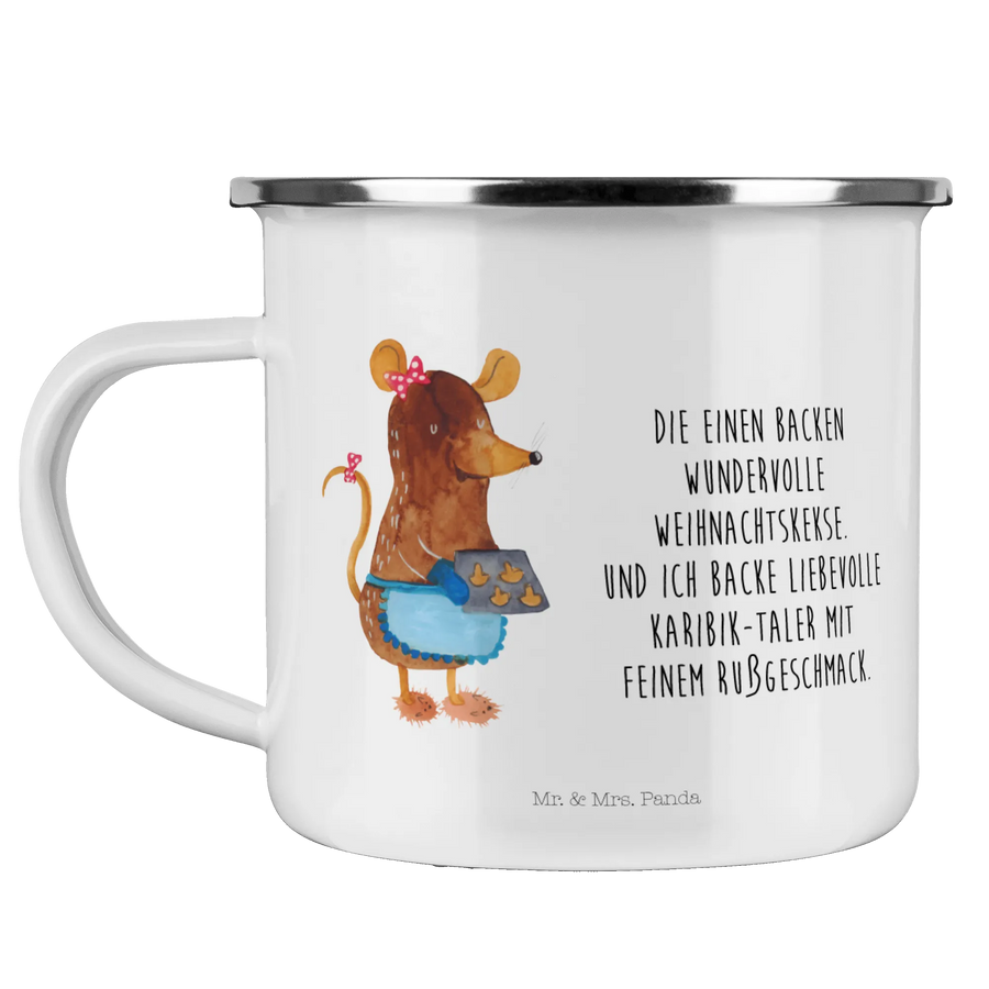 Die wunderschöne Camping Emaille Tasse mit dem süßen Motiv "Maus Kekse" aus der Winter Kollektion von Mr. & Mrs. Panda ist das perfekte Geschenk für all jene, die die kalte Jahreszeit mit einem Lächeln begrüßen möchten. Diese Tasse ist nicht nur superleicht und praktisch, sondern auch ideal für heiße und kalte Getränke.