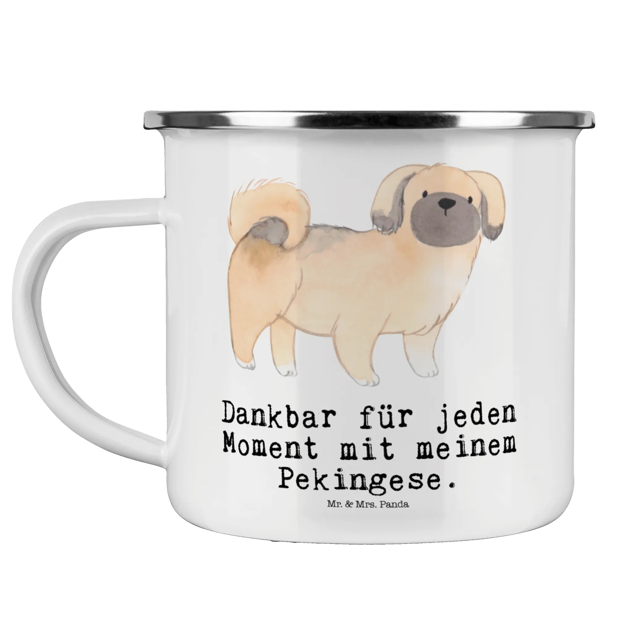 Die wunderschöne Camping Emaille Tasse "Pekingese Moment" von Mr. & Mrs. Panda ist ein absolutes Must-Have für alle Hundeliebhaber und Camping-Fans! Mit ihrem charmanten Pekingese-Motiv und dem liebevollen Slogan "Dankbar für jeden Moment mit meinem Pekingese" zaubert sie jedem ein Lächeln ins Gesicht.