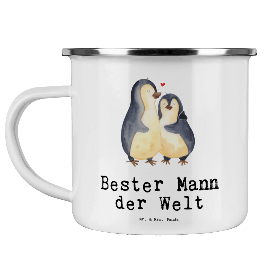 Die Camping Emaille Tasse mit dem süßen Pinguin-Motiv "Bester Mann der Welt" von Mr. & Mrs. Panda ist das perfekte Geschenk für deinen besonderen Mann. Egal, ob für den Geburtstag, als Dankeschön oder einfach so – mit dieser bezaubernden Tasse machst du ihm eine Freude, die ihm ein Lächeln ins Gesicht zaubert!