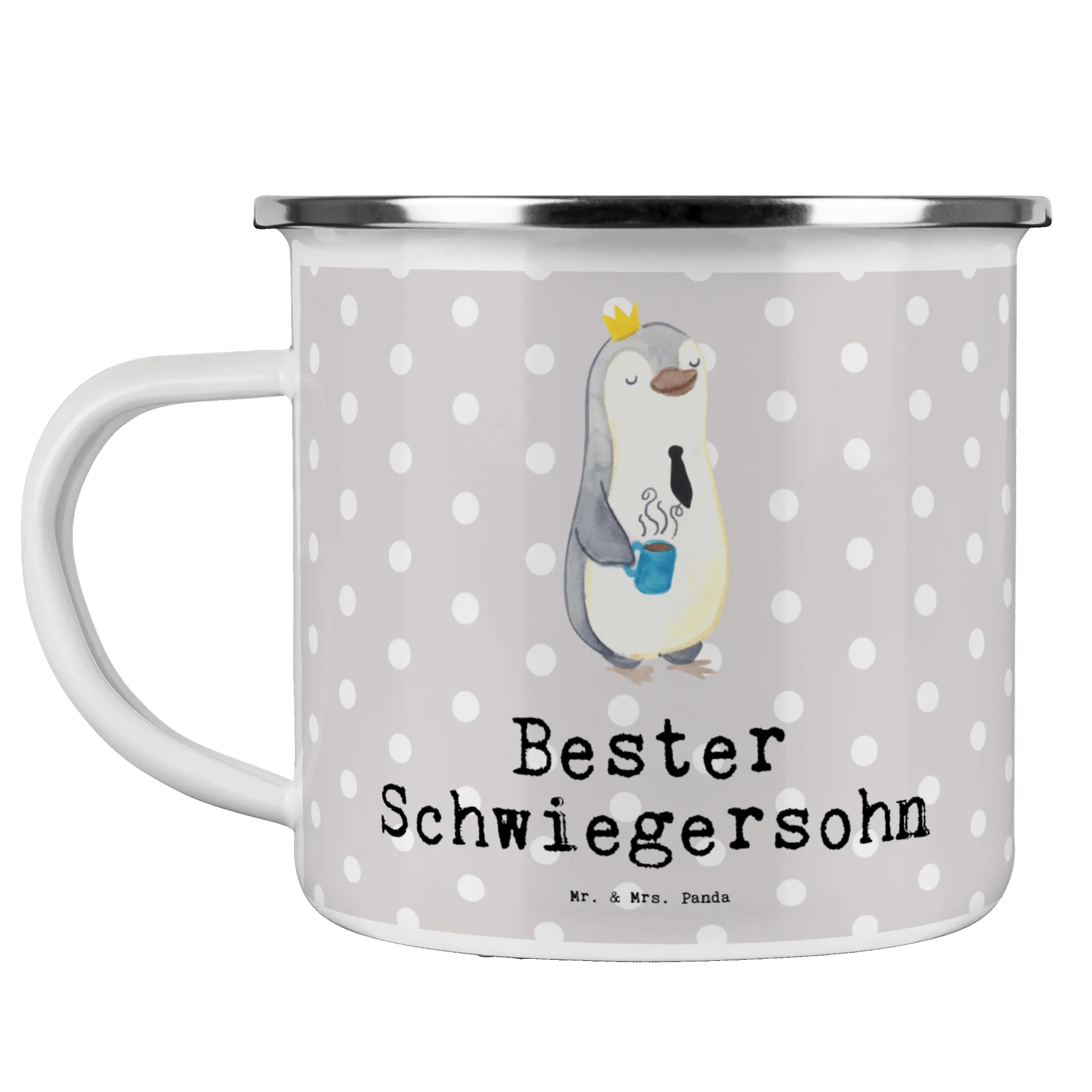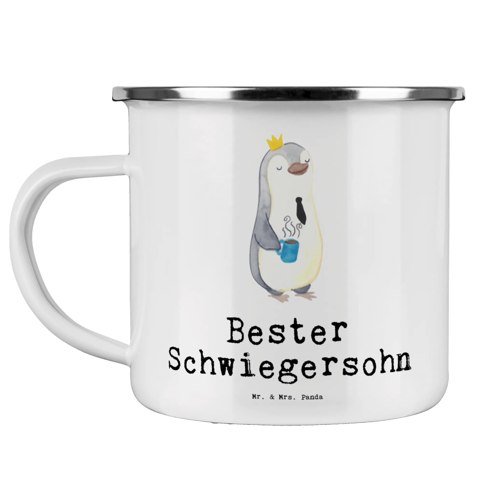 Camping Emaille Tasse Pinguin Bester Schwiegersohn - Weiß
