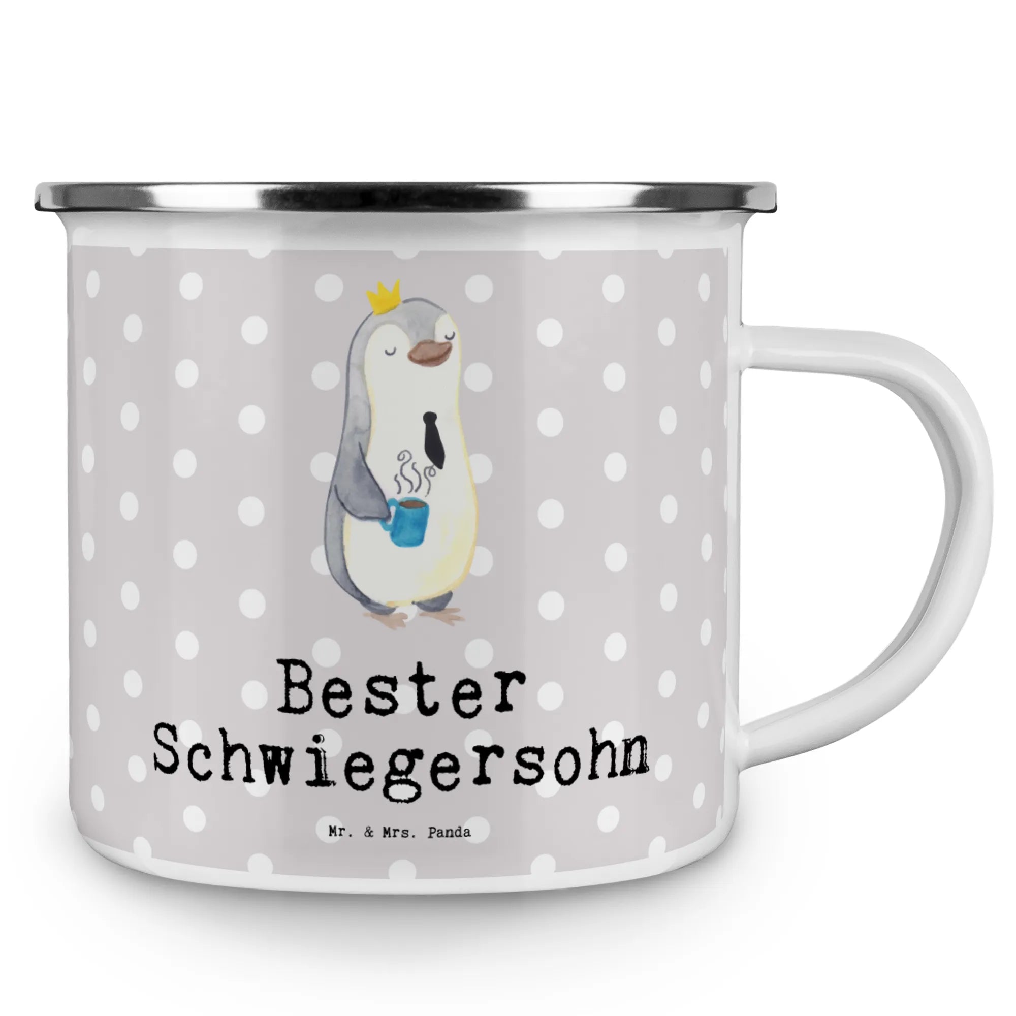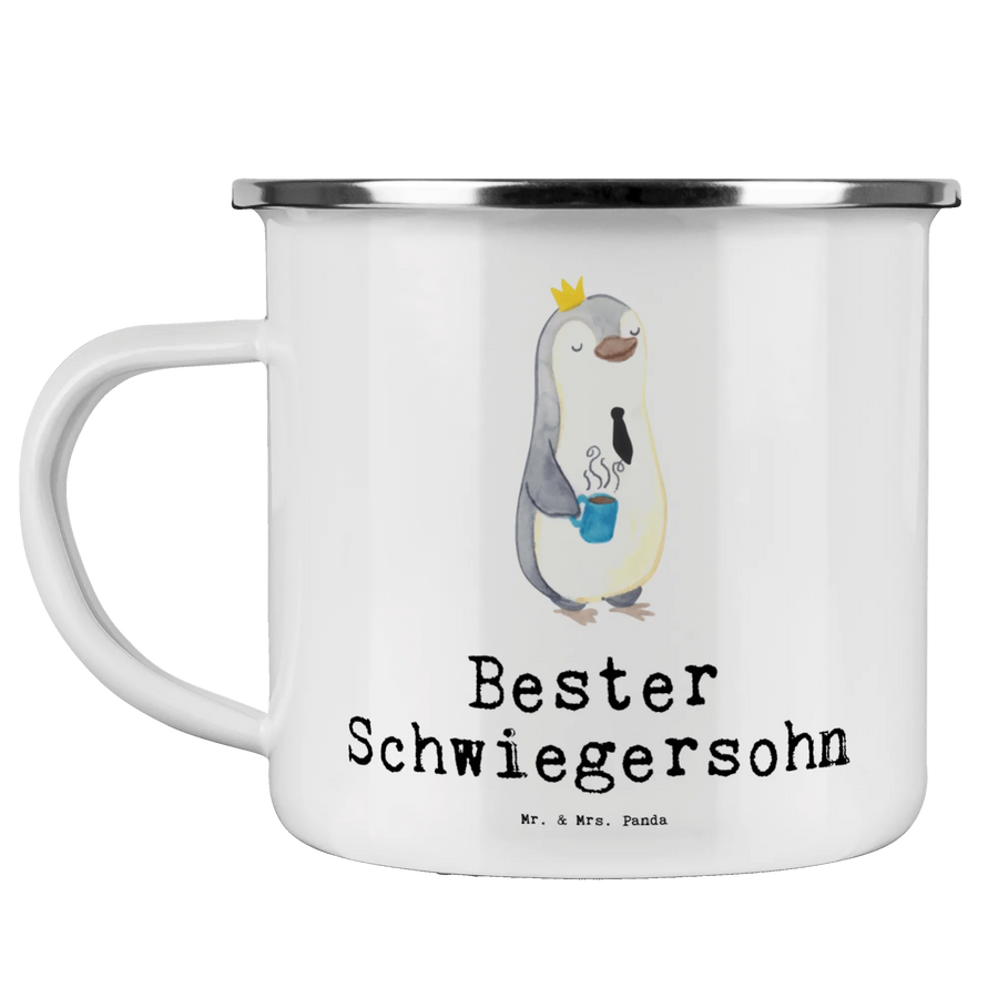Mr. & Mrs. Panda Campingtasse „Pinguin – Bester Schwiegersohn“ – das perfekte Geschenk für alle, die Natur lieben und ihren Schwiegersohn feiern möchten. Der niedliche Pinguin mit Krönchen und Kaffee sowie der Schriftzug „Bester Schwiegersohn“ machen diese Emaille Tasse zu einem herzerwärmenden Mitbringsel für Hochzeit, Heirat, Geburtstag oder als kleines Dankeschön.