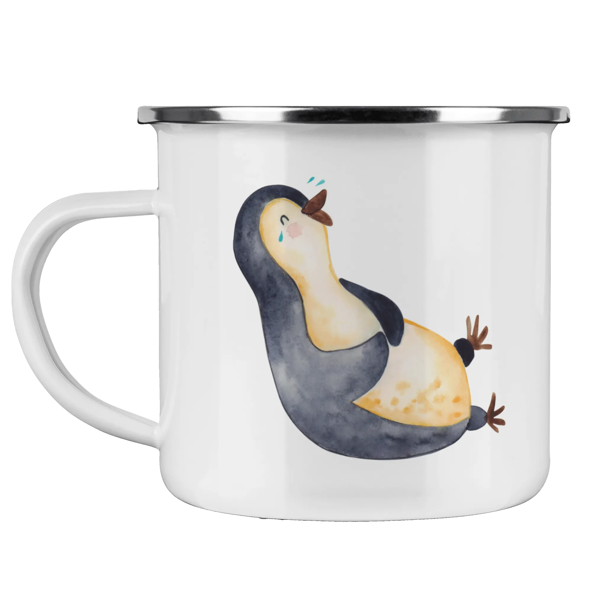 Die perfekte Camping Emaille Tasse von Mr. & Mrs. Panda bringt Freude in jedes Outdoor-Abenteuer! Mit ihrem süßen Motiv des lachenden Pinguins zaubert sie garantiert ein Lächeln auf dein Gesicht.