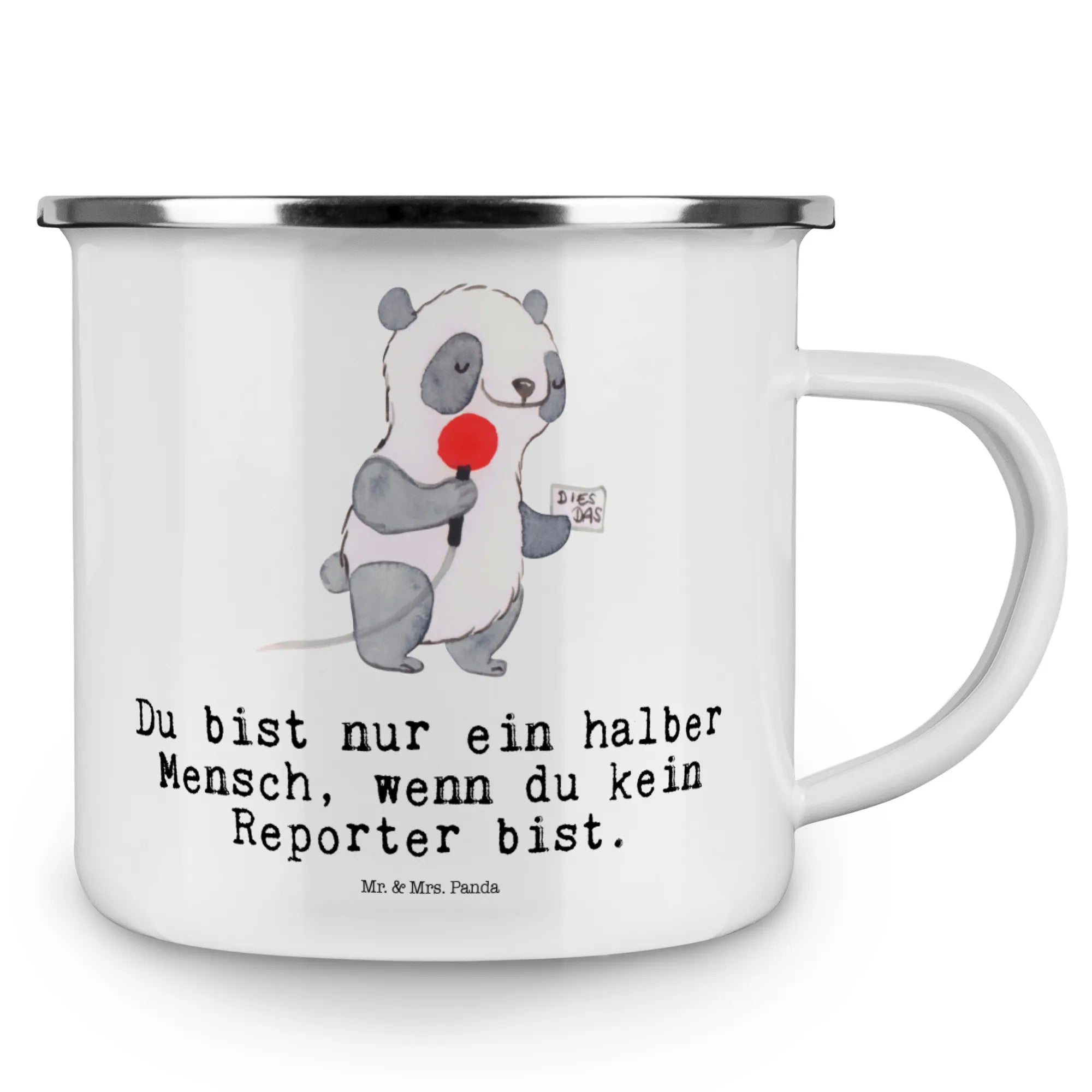 Die Camping Emaille Tasse "Reporter mit Herz" von Mr. & Mrs. Panda ist das perfekte Geschenk für all die leidenschaftlichen und kreativen Reporter und Reporterinnen unter uns! Diese bezaubernde Tasse vereint Stil und Funktionalität und eignet sich hervorragend für jeden Outdoor-Liebhaber. Ob beim gemütlichen Campingausflug oder bei einer Wandertour, diese Emaille Tasse wird garantiert der treue Begleiter sein. Mit einem Fassungsvermögen von 300 ml ist sie ideal für heiße und kalte Getränke und passt perfekt in jeden Rucksack.
