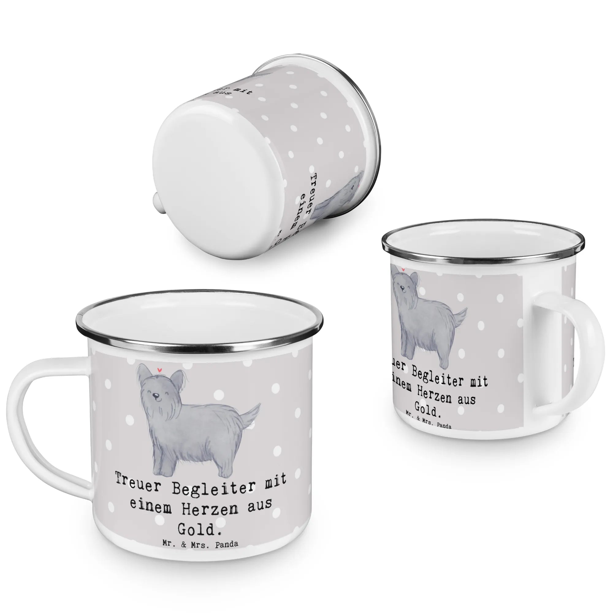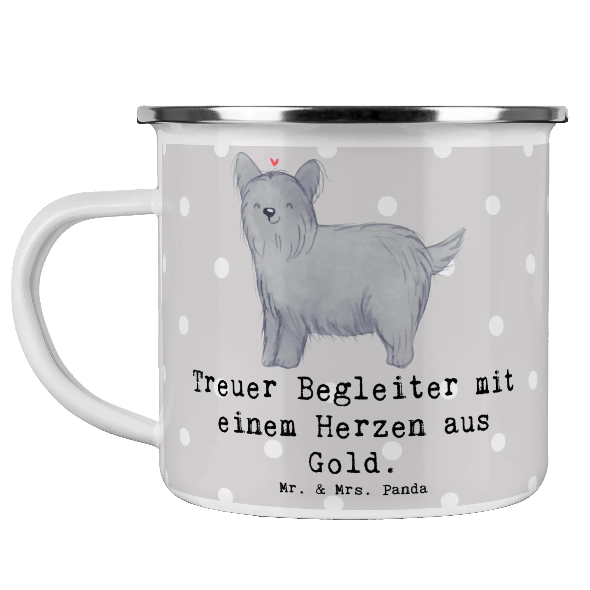 Die wunderschöne Camping Emaille Tasse von Mr. & Mrs. Panda ist der perfekte Begleiter für alle Hundefreunde und Naturbegeisterte! Mit dem niedlichen Motiv des Skye Terriers und dem herzerwärmenden Slogan "Treuer Begleiter mit einem Herzen aus Gold" bringt diese Tasse nicht nur gute Laune in die Natur, sondern erinnert auch stets an deinen besten Freund auf vier Pfoten.