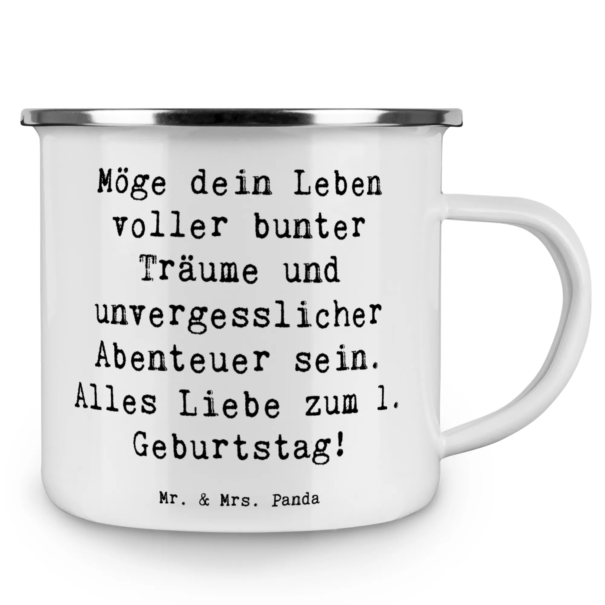 Die Camping Emaille Tasse von Mr. & Mrs. Panda ist das perfekte Geschenk für den 1. Geburtstag! Diese wunderschöne und beständige Tasse ist nicht nur optisch ansprechend, sondern auch äußerst praktisch. Aus kratzfester Emaille gefertigt, bietet sie eine hohe Resistenz gegen Korrosion und eignet sich ideal für Campingausflüge oder den nächsten Wandertag. Egal, ob du heiße Schokolade, Kaffee oder eine erfrischende Limonade darin genießt, die Tasse hält alles wunderbar temperiert.