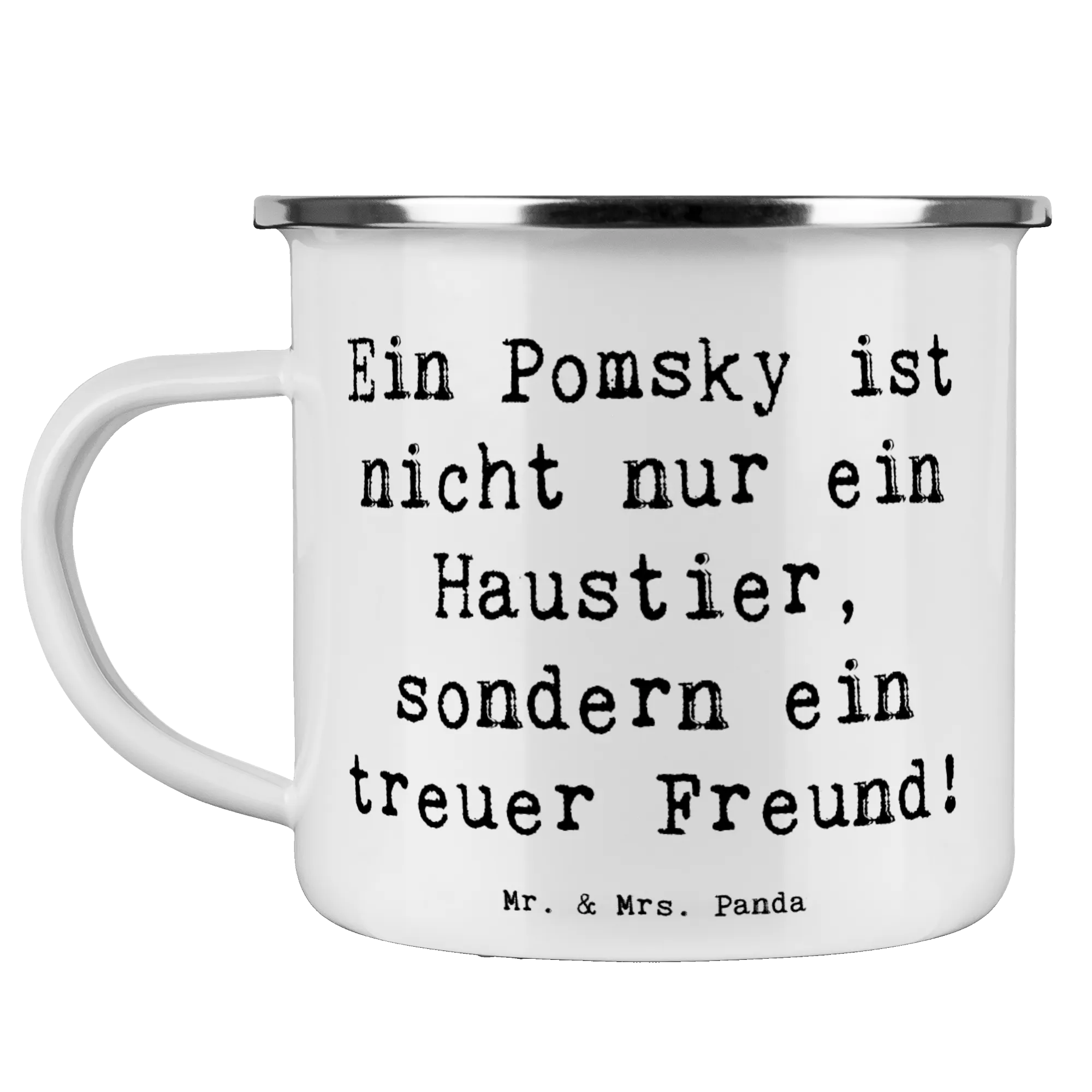 Die Camping Emaille Tasse mit dem niedlichen Pomsky-Motiv von Mr. & Mrs. Panda ist das perfekte Geschenk für alle Hundeliebhaber und Outdoor-Enthusiasten! Mit dem Slogan "Ein Pomsky ist nicht nur ein Haustier, sondern ein treuer Freund!" bringt diese Tasse ein Lächeln in jedes Abenteuer und erinnert daran, wie wichtig unsere pelzigen Freunde für uns sind.