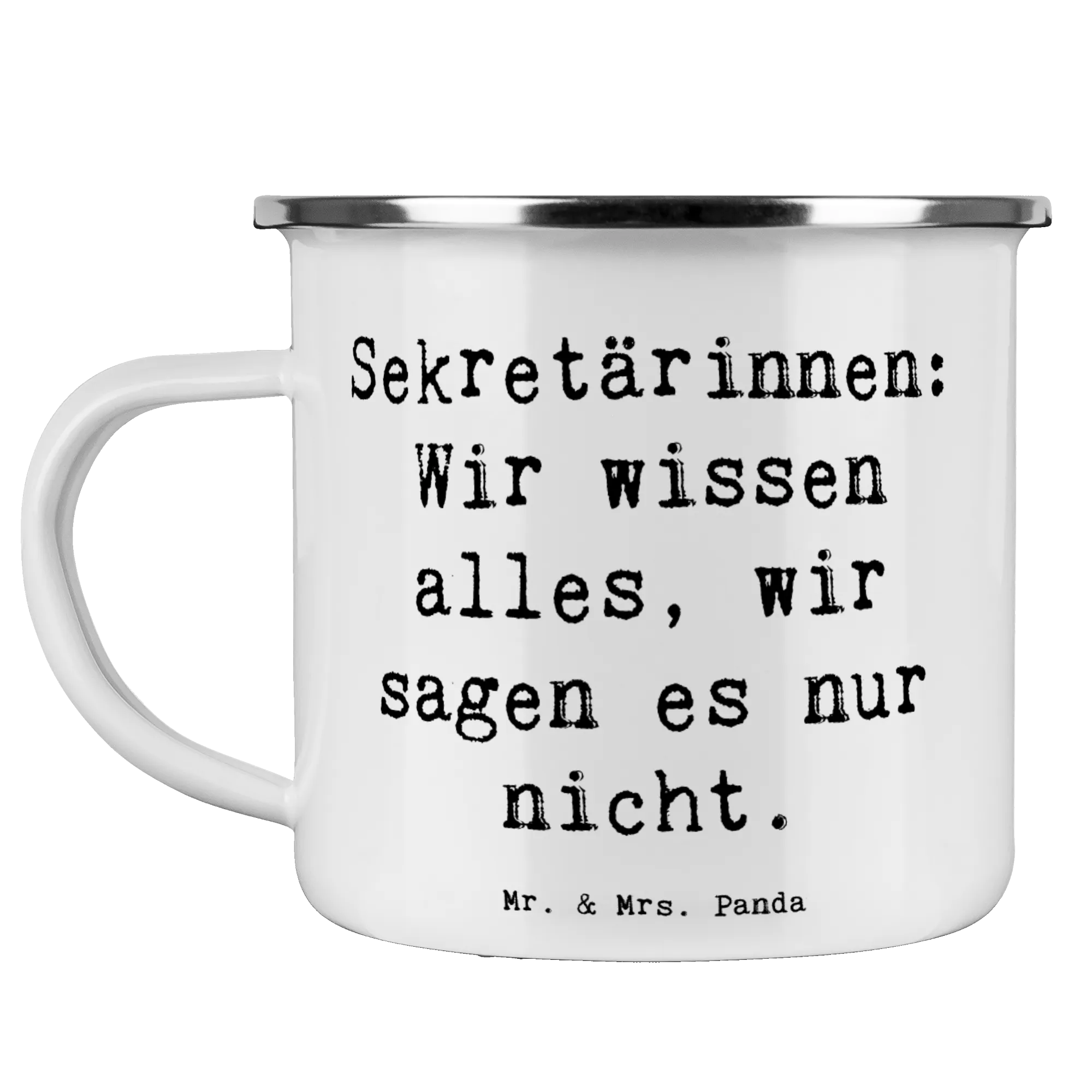 Camping Emaille Tasse Spruch Sekretärinnen: Wir wissen alles, wir sagen es nur nicht.