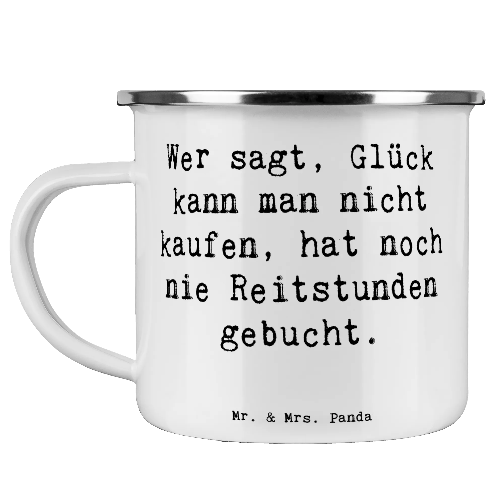Camping Emaille Tasse Spruch Wer sagt, Glück kann man nicht kaufen, hat noch nie Reitstunden gebucht.