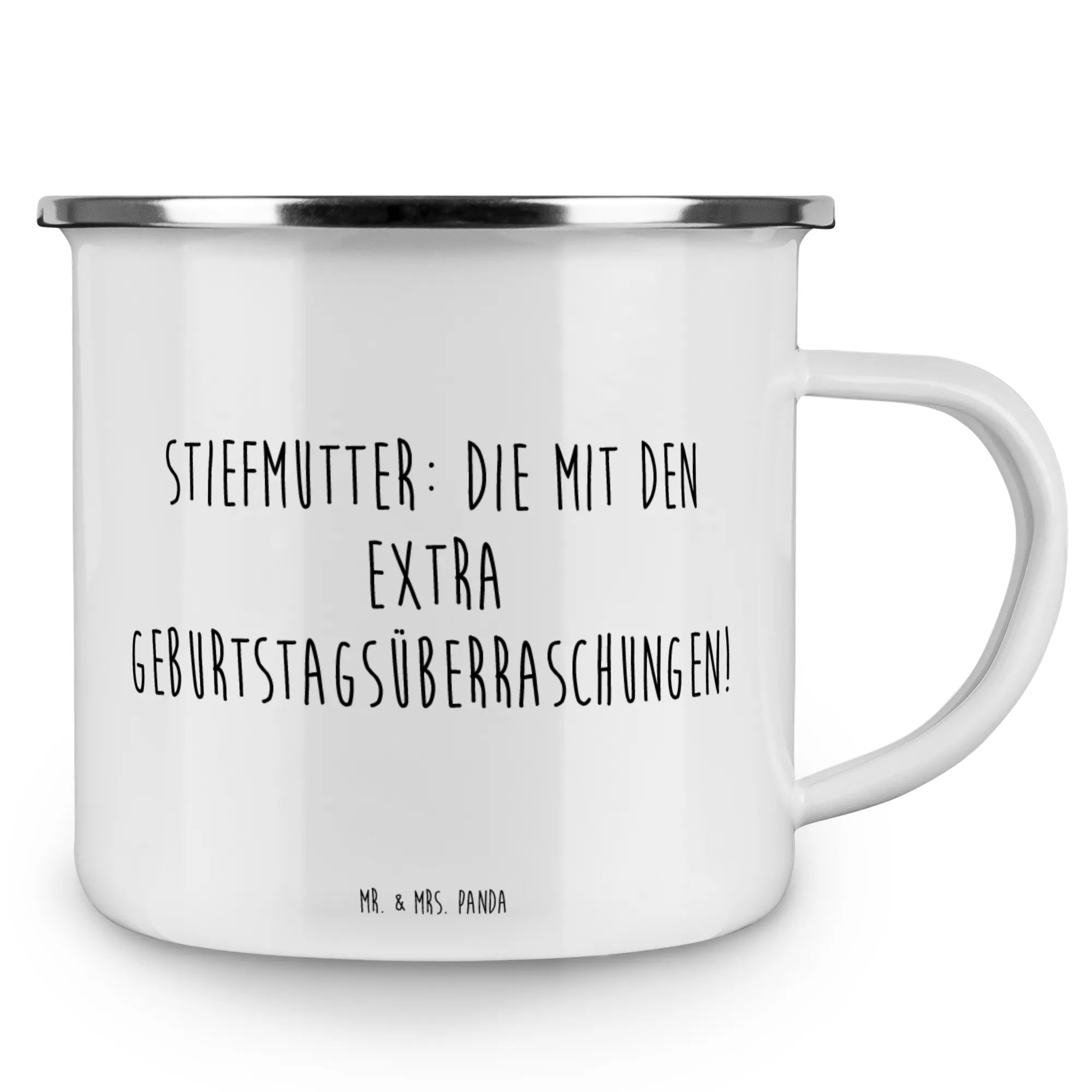 Camping Emaille Tasse Spruch Stiefmutter Überraschungen – Mr. & Mrs. Panda