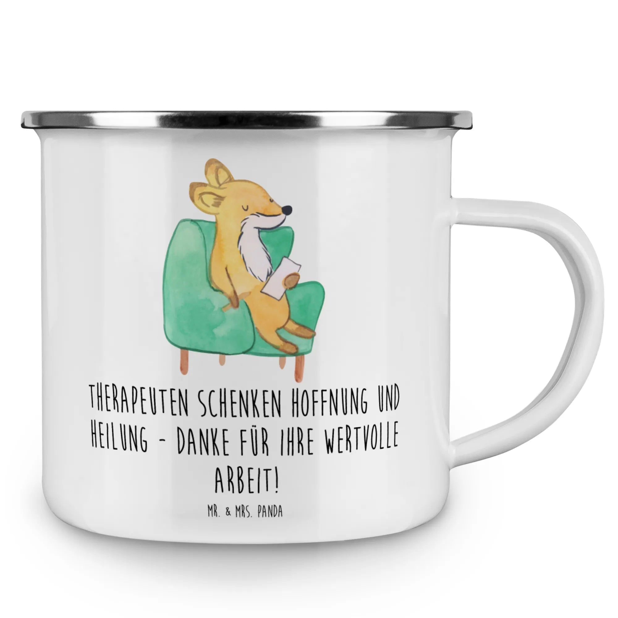 Die Camping Emaille Tasse 'Therapeut' von Mr. & Mrs. Panda ist das perfekte Geschenk für alle, die mit Liebe und Hingabe in der therapeutischen Arbeit stehen. Diese wunderschöne und beständige Tasse bringt nicht nur Stil und Funktionalität in dein Outdoor-Erlebnis, sondern ist auch ein herzlicher Ausdruck deiner Dankbarkeit.