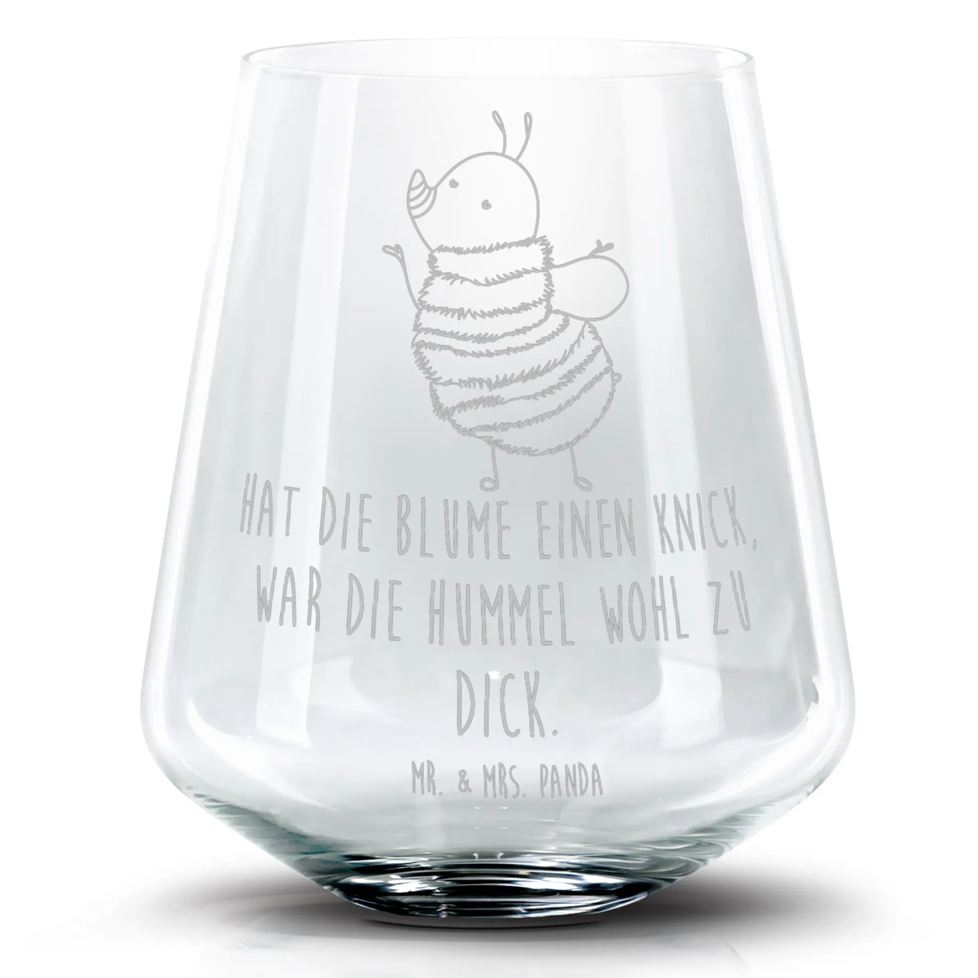 Das zuckersüße Motiv einer flauschigen Hummel sorgt für gute Laune und bringt ein Stück Natur in dein Zuhause. Wie die Hummel selbst, die mit ihrem fröhlichen Gelb und Schwarz strahlt, wird auch dieses Glas deine Stimmung heben. Die Hummel ist perfekt mit der witzigen Gravur „Hat die Blume einen Knick, war die Hummel wohl zu dick.“ versehen, die jeden Betrachter zum Schmunzeln bringt.