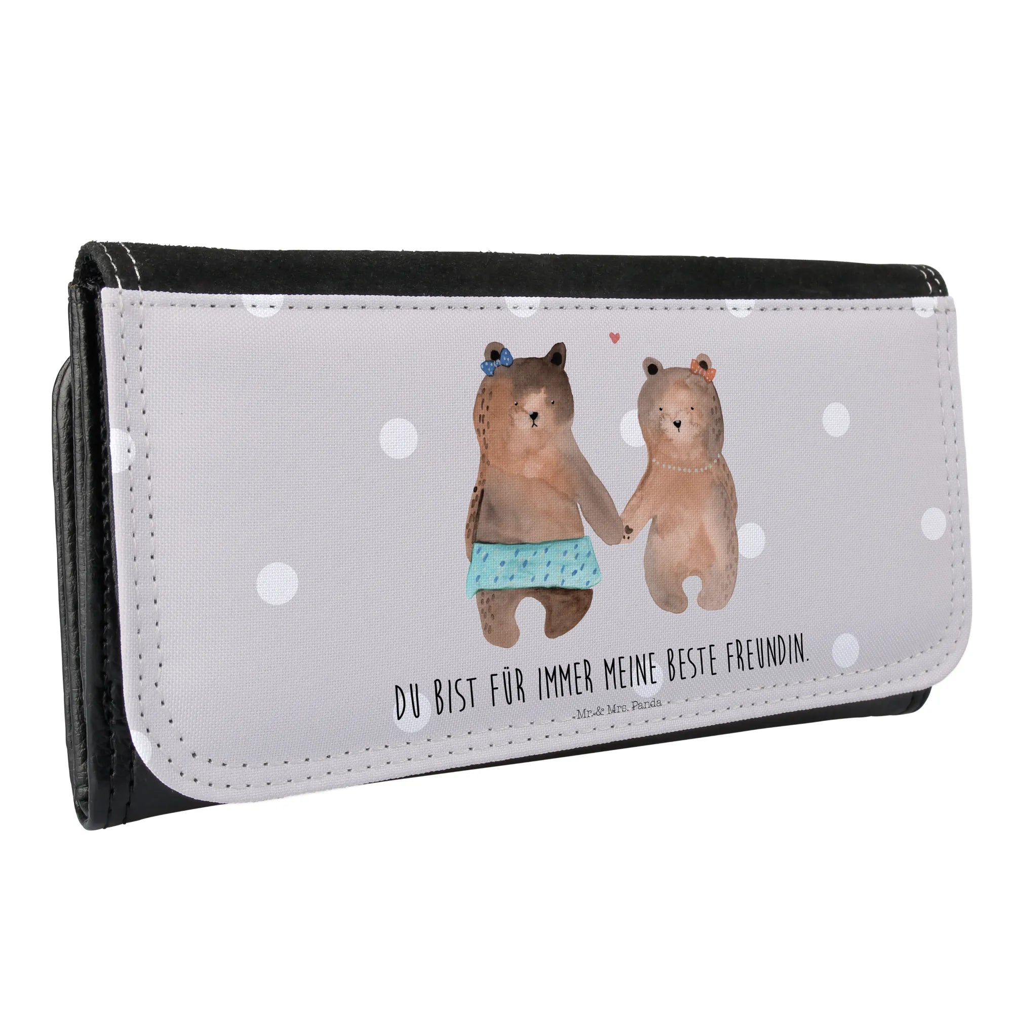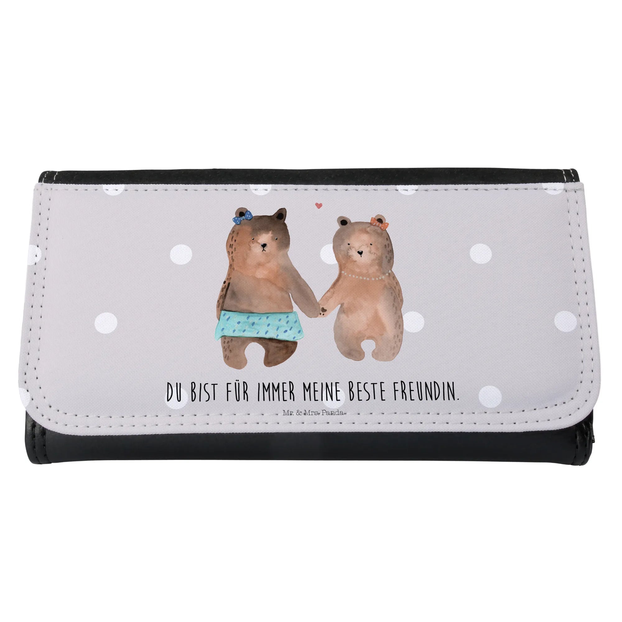 Suchst du nach dem perfekten Geschenk für deine beste Freundin? Das Damen Portemonnaie mit dem charmanten Motiv "Bär Freundin" von der einzigartigen Kollektion von Mr. & Mrs. Panda ist genau das richtige Präsent, um deine Wertschätzung auszudrücken! Die beiden süßen Bärenmädchen, die sich an den Händen halten, wagenlogover macht dieses Portemonnaie zu einem symbolischen Liebesbeweis für die schönsten Momente einer Freundschaft. Ob zu Geburtstagen, zum Jahrestag oder einfach nur so, um "Danke" zu sagen - dieses Portemonnaie ist ein absolutes Must-Have und bereitet nicht nur Freude, sondern sorgt auch für strahlende Augen!