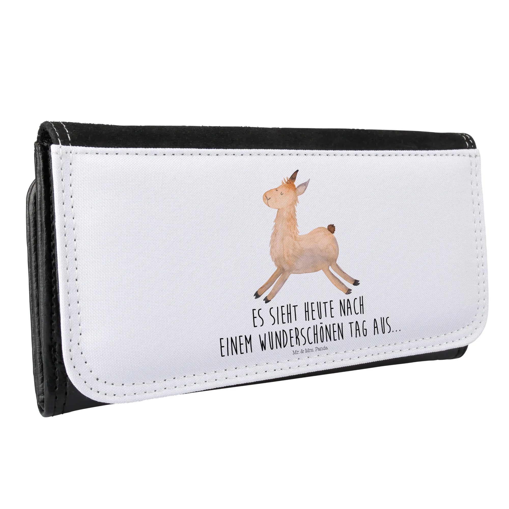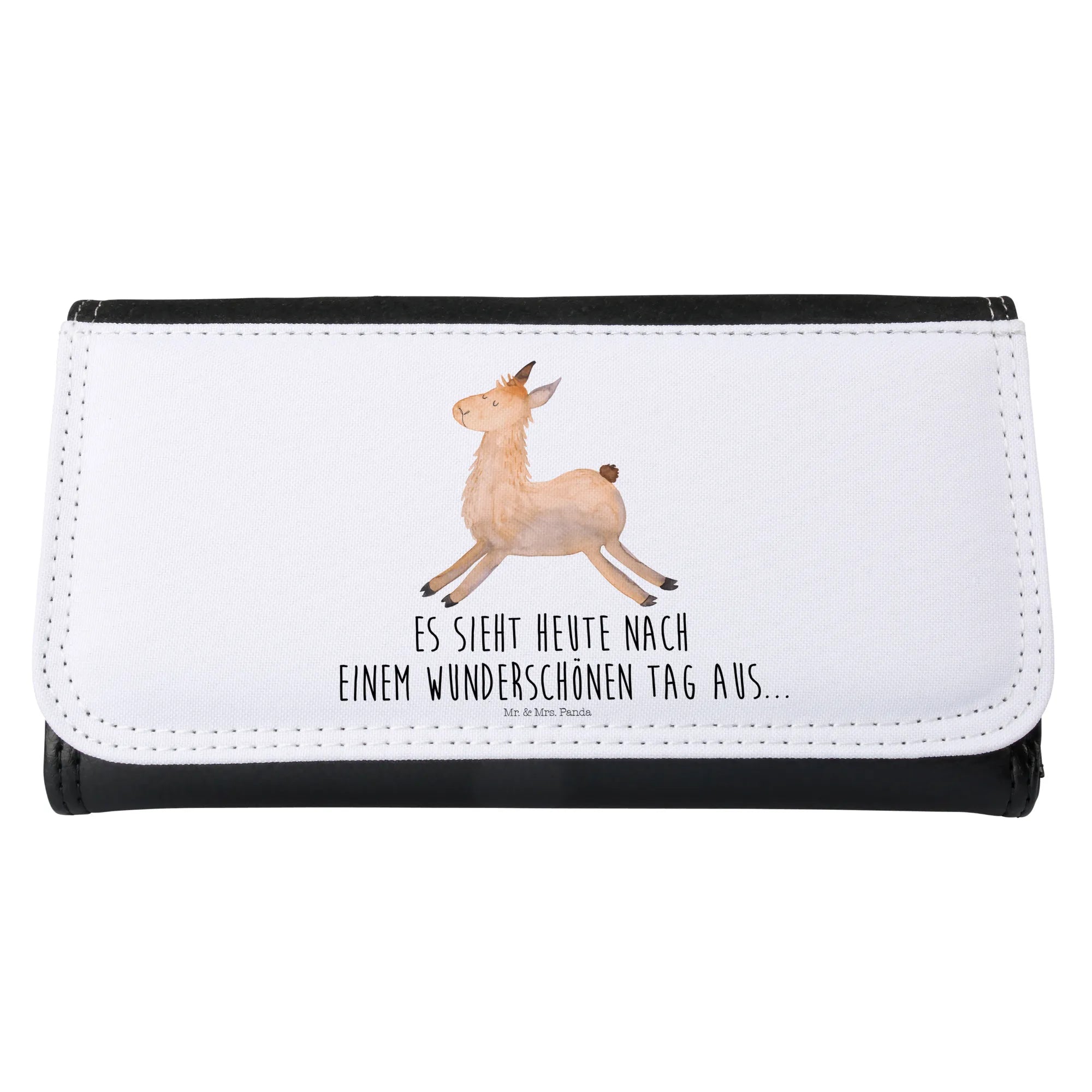 Entdecke das perfekte Damen Portemonnaie von Mr. & Mrs. Panda, das nicht nur funktional, sondern auch ein echter Hingucker ist! Dieses wundervolle Portemonnaie mit dem Motiv "Lama springend" aus unserer fantastischen Lama-Kollektion ist das ideale Geschenk für alle Lama-Liebhaberinnen. Ob als persönliche Belohnung für dein mühsames Abitur, als kleines Aufmunterungsgeschenk für deine beste Freundin in Liebeskummer-Krisen oder einfach, um dich selbst jeden Morgen mit einem "Es sieht heute nach einem wunderschönen Tag aus..." zu erfreuen. Es strahlt Glück und Vorfreude aus und begleitet dich durch den Alltag.