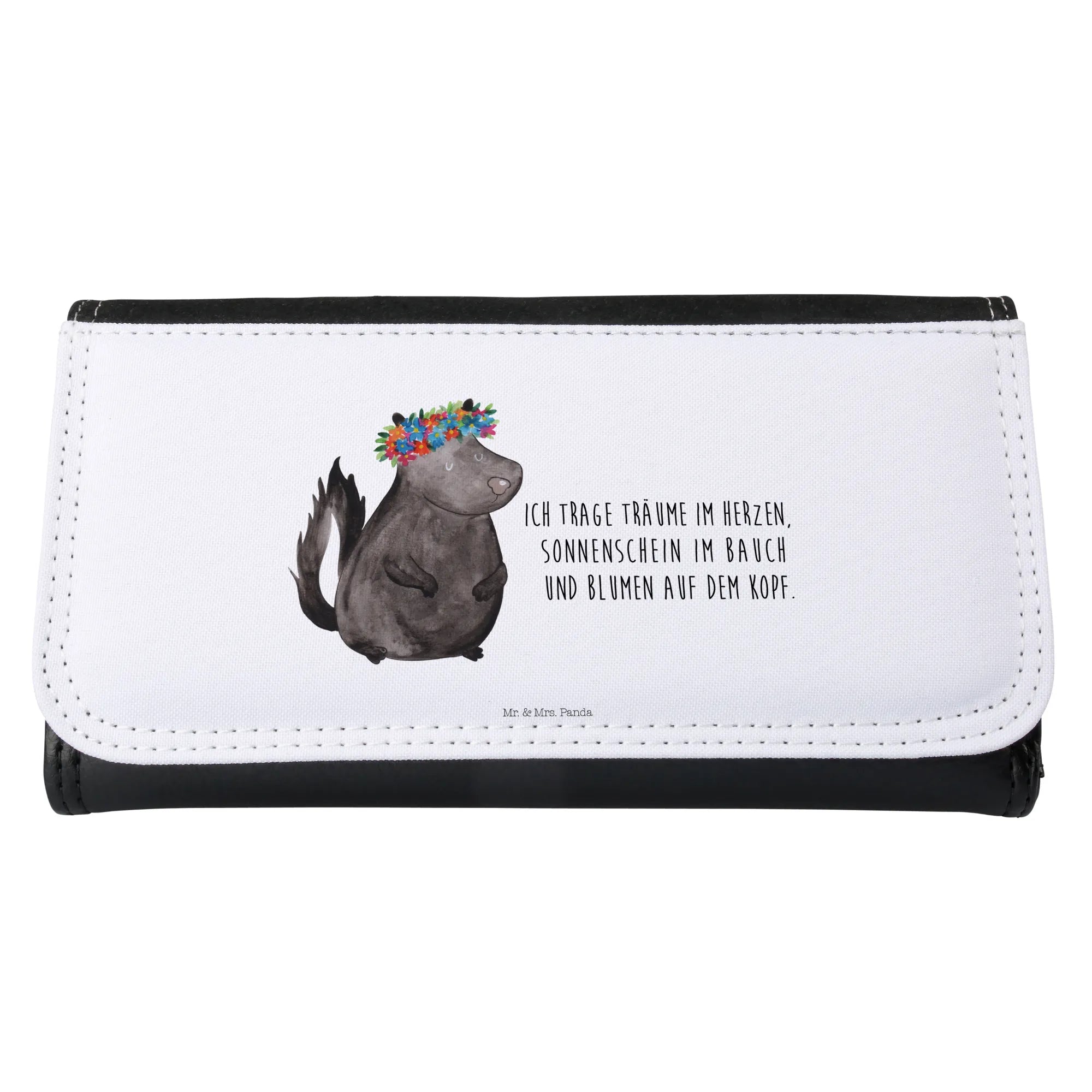 Entdecke das zauberhafte Damen Portemonnaie Stinktier Blumenmaedchen aus der einzigartigen Stinktier-Kollektion von Mr. & Mrs. Panda. Dieses wunderschöne Portemonnaie ist nicht nur ein praktisches Accessoire für den Alltag, sondern vielmehr ein echter Hingucker, der gute Laune verbreitet! Das süße Stinktier mit einem bunten Blumenkranz auf dem Kopf ist in leuchtenden Farben gedruckt und bringt die Magie der Natur direkt in Deine Tasche.