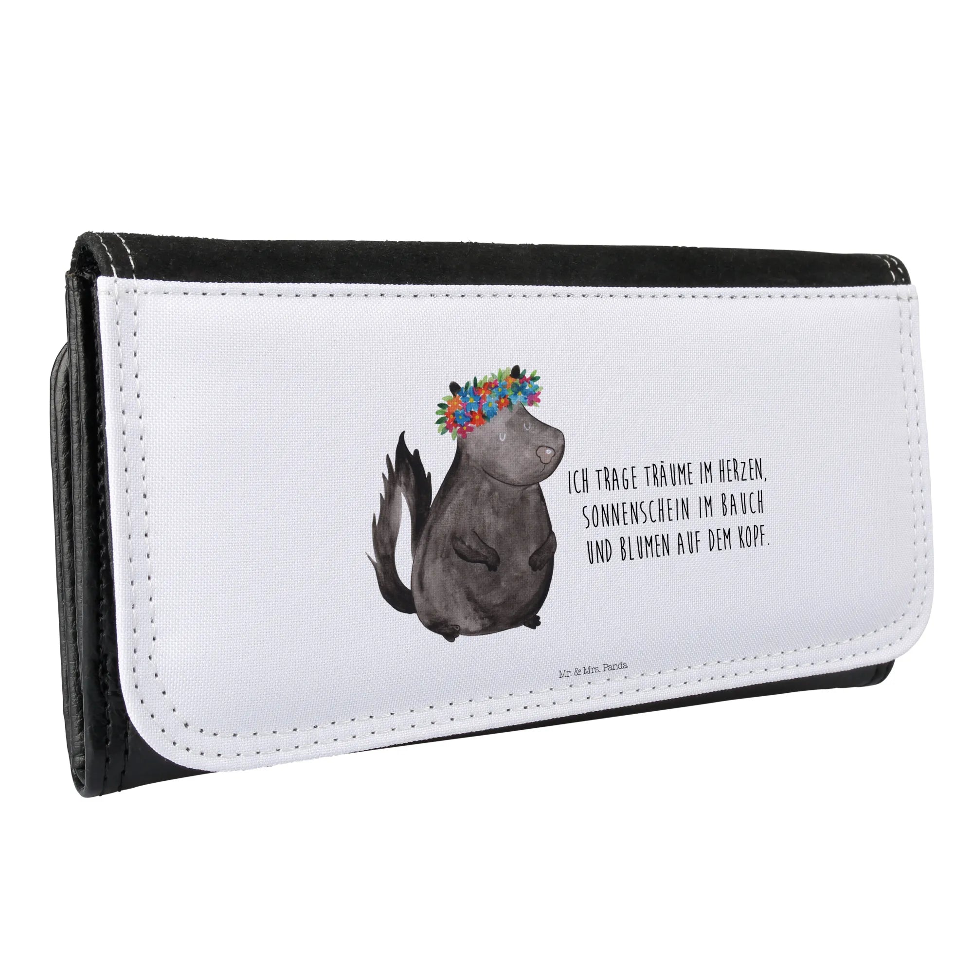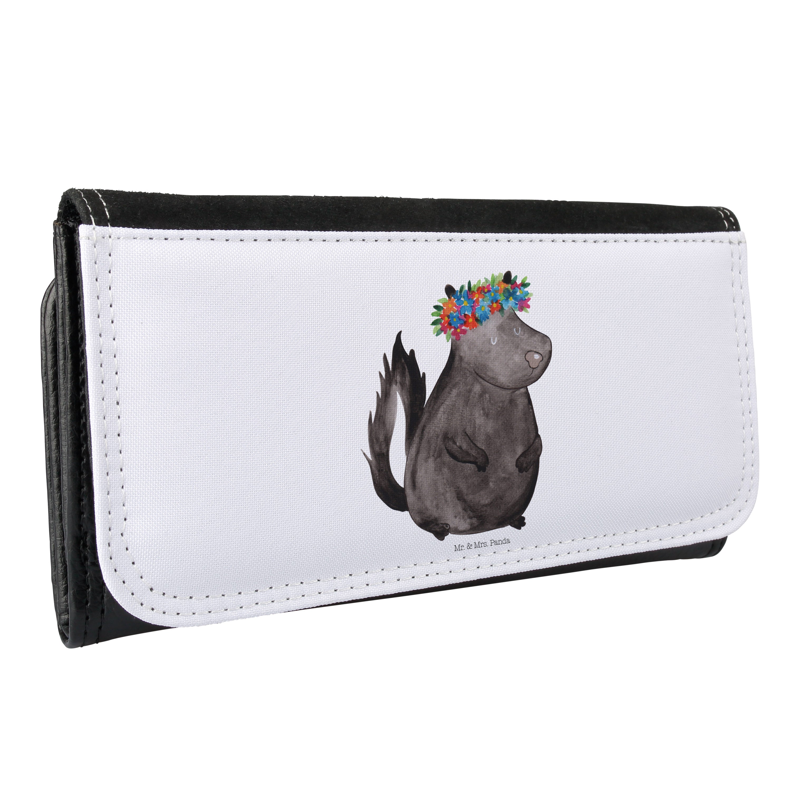 Das wunderschöne Damen Portemonnaie Stinktier Blumenmädchen von Mr. & Mrs. Panda ist das perfekte Accessoire für alle, die die Natur und ihre Schönheiten lieben. Mit seinem bezaubernden Motiv eines süßen Stinktiers, das einen bunten Blumenkranz trägt, wird dieses Portemonnaie nicht nur zum praktischen Begleiter im Alltag, sondern auch zum Hingucker in deiner Handtasche.