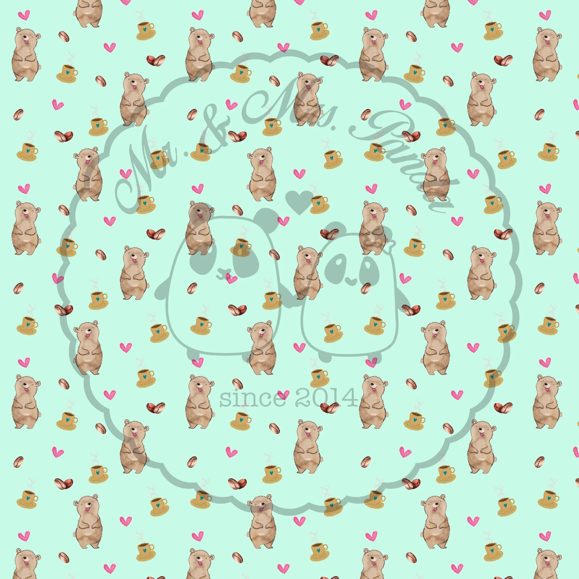 Bär Kaffee Muster – Kaffee- & Herz Muster mit Bär | Liebevolle Designs für Textilien & Accessoires