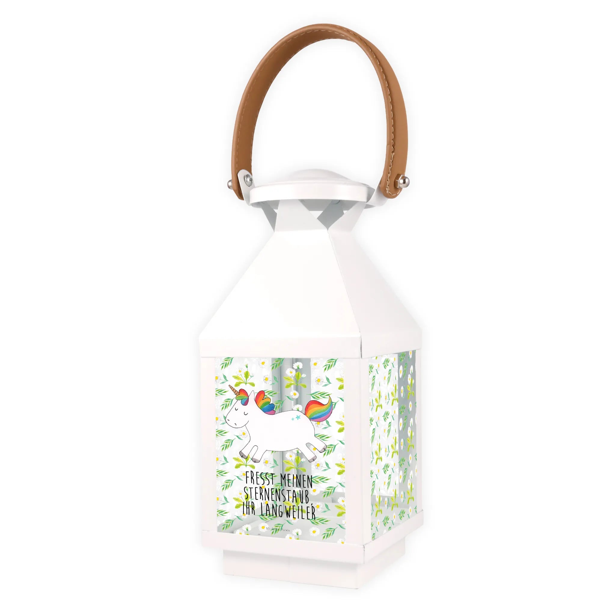Die Deko Laterne Einhorn Happy von Mr. & Mrs. Panda ist das perfekte Geschenk für alle Einhorn-Liebhaber. Diese bezaubernde Gartendekoration bringt Freude und ein Lächeln in jedes Zuhause. Mit ihrem fröhlichen Einhorn-Motiv und dem Motto "Fresst meinen Sternenstaub, ihr Langweiler!" zaubert sie ein Stück Magie in deinen Garten oder auf deinen Balkon.