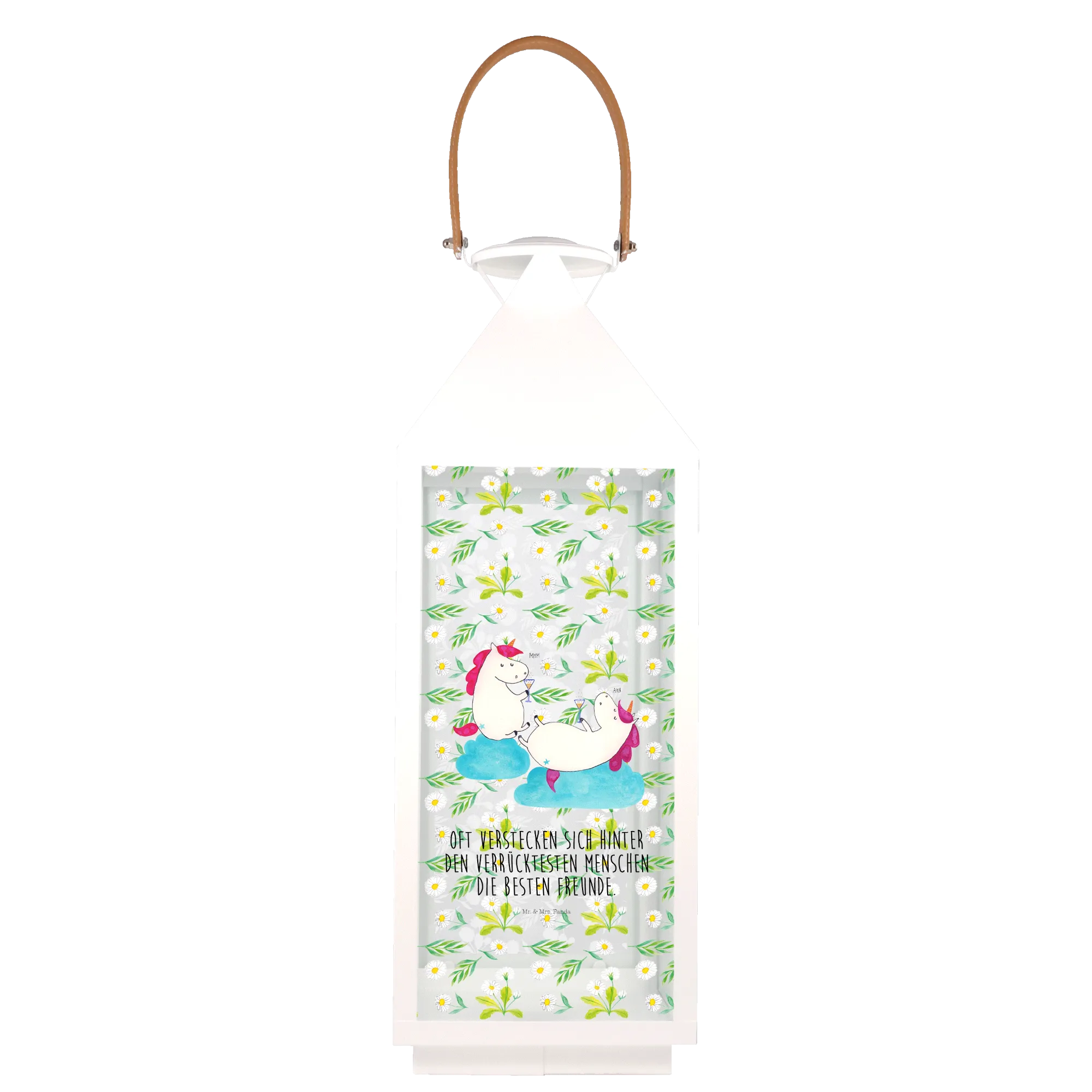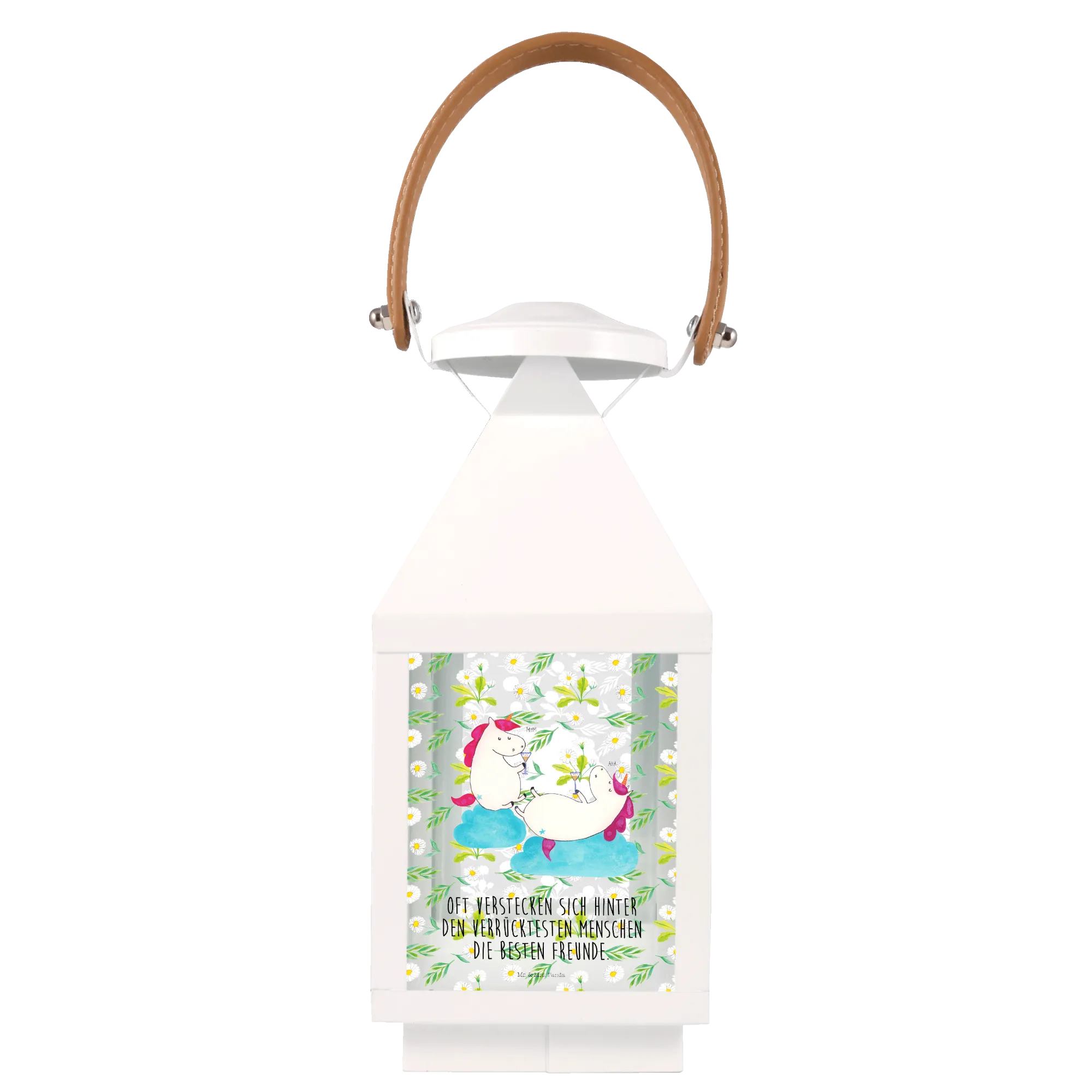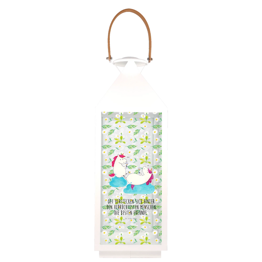 Mit den süßen, handgezeichneten Einhorn-Motiven und dem fröhlichen Spruch 'Oft verstecken sich hinter den verrücktesten Menschen die besten Freunde.' wird sie schnell zum Hingucker bei jedem Mädelsabend oder der nächsten Feier. Egal ob im Garten, auf der Terrasse oder am Balkon – diese Laterne sorgt für eine gemütliche Atmosphäre und ein unvergessliches Ambiente.