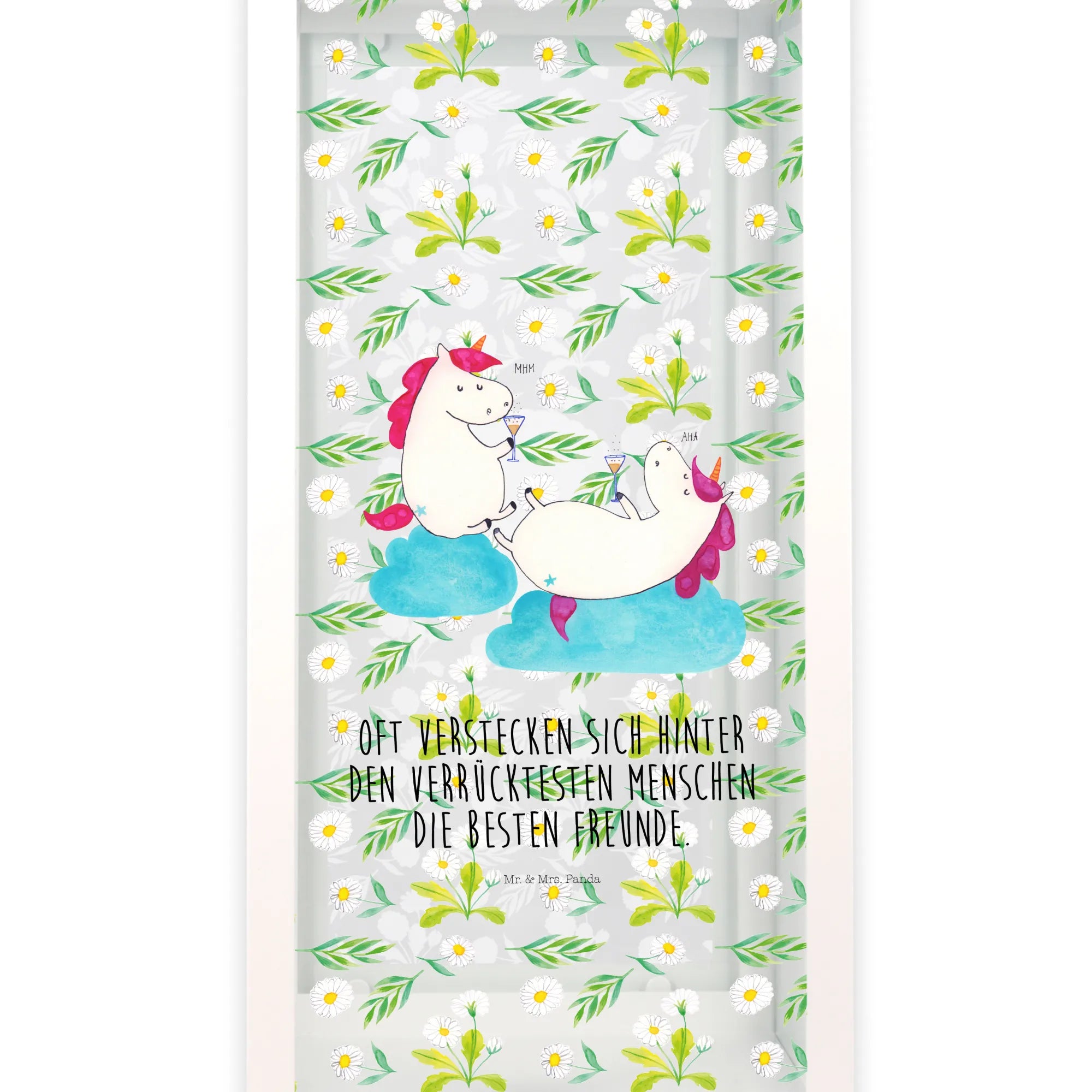 Die Deko Laterne mit dem Motiv "Einhörner Sekt" von Mr. & Mrs. Panda ist das ideale Geschenk für alle, die ein Faible für magische Momente haben. Egal, ob Du sie zum Mädelsabend, als Geburtstagsüberraschung oder einfach als kleine Aufmerksamkeit für Deine beste Freundin verschenkst, diese Laterne wird für strahlende Augen sorgen!