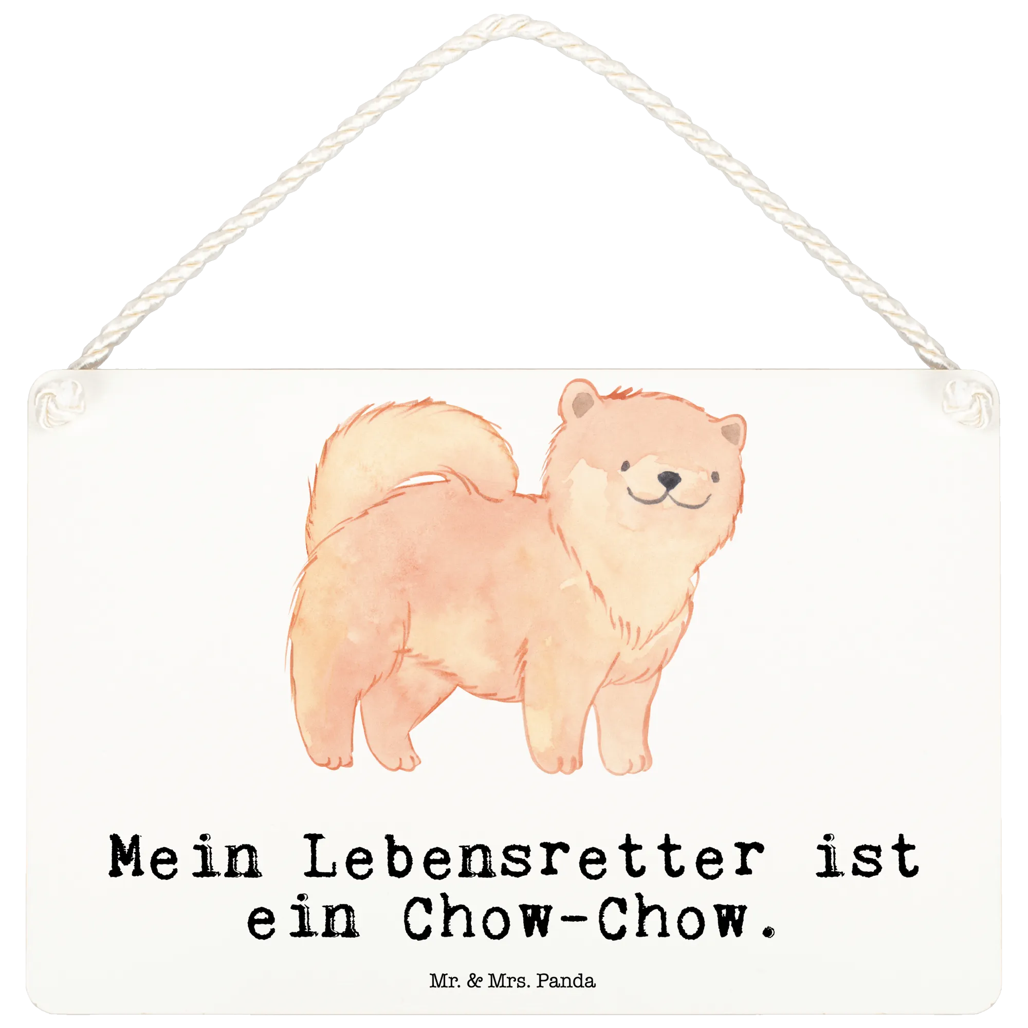 Das Deko Schild 'Mein Lebensretter ist ein Chow-Chow' von Mr. & Mrs. Panda ist nicht nur eine wunderschöne Wanddekoration, sondern auch eine liebevolle Hommage an jeden Chow-Chow-Hundebesitzer. Es zeigt einen entzückenden Chow-Chow mit seinem flauschigen, warmen Fell in Aquarelltönen von Orange bis Beige. Diese süße Hunderasse hat das Herz vieler Tierfreunde erobert, und unser Schild bringt die Liebe zu diesem treuen Begleiter perfekt zum Ausdruck.