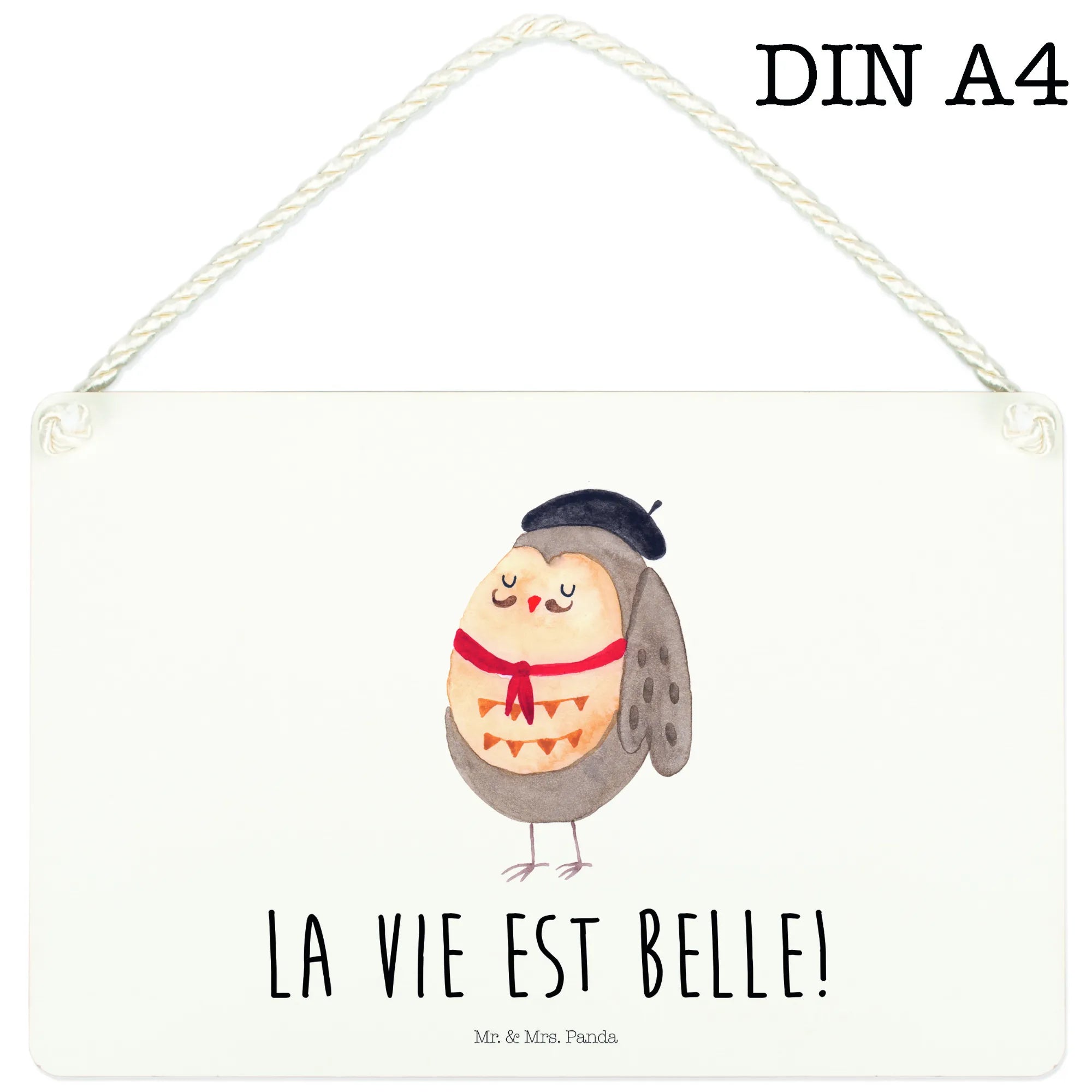 Deko Schild Eule Frankreich - mit Spruch - Weiß