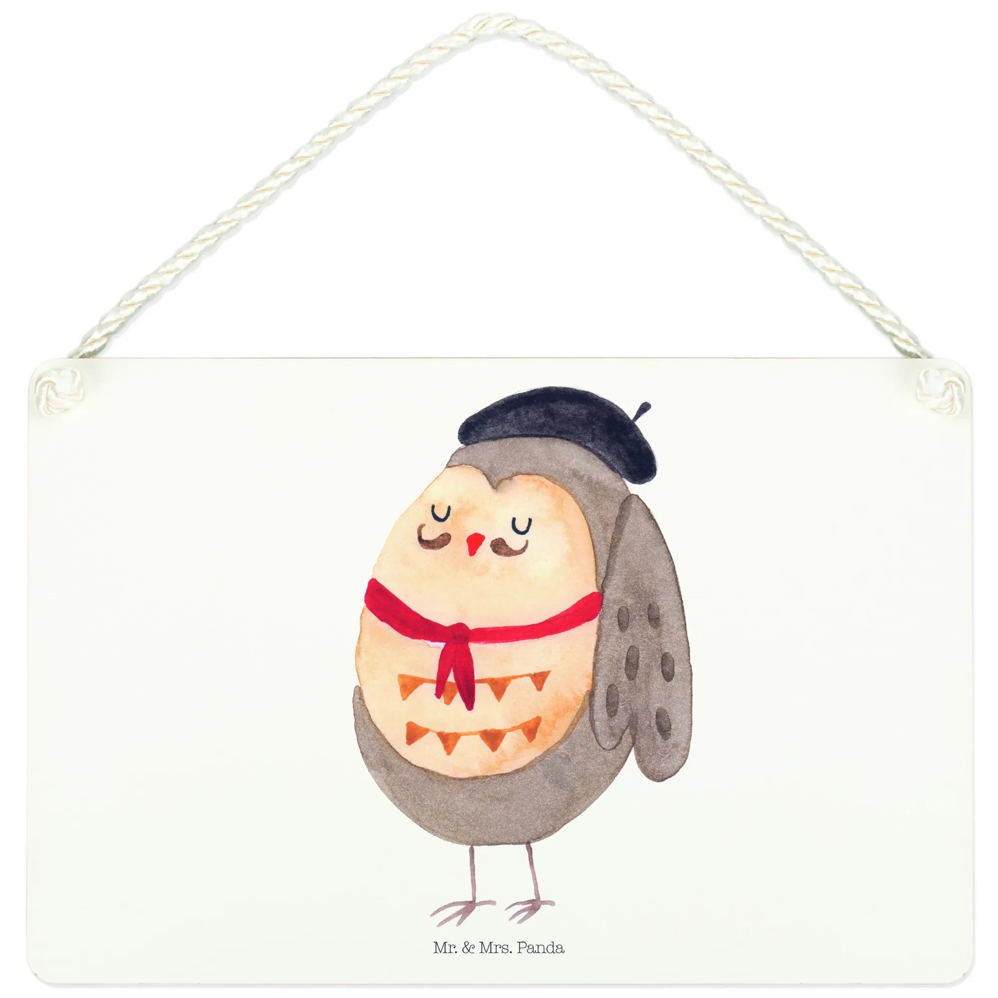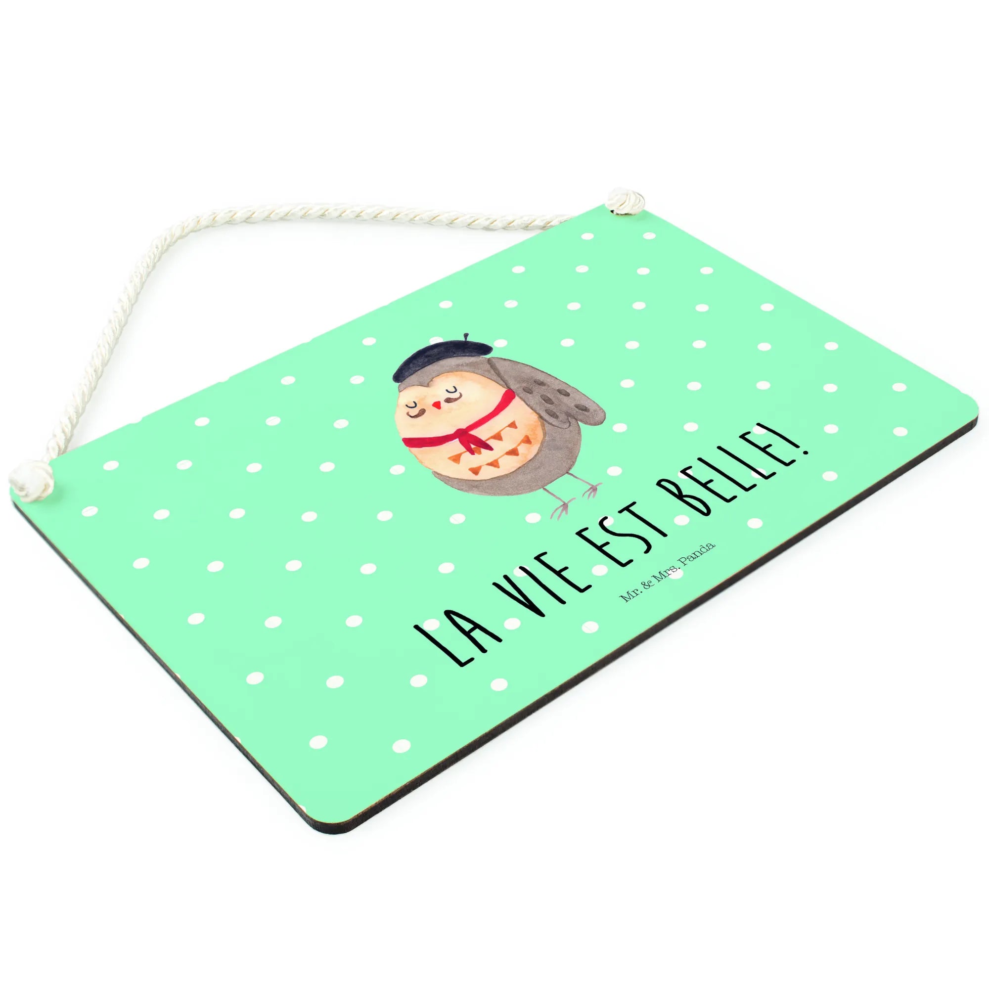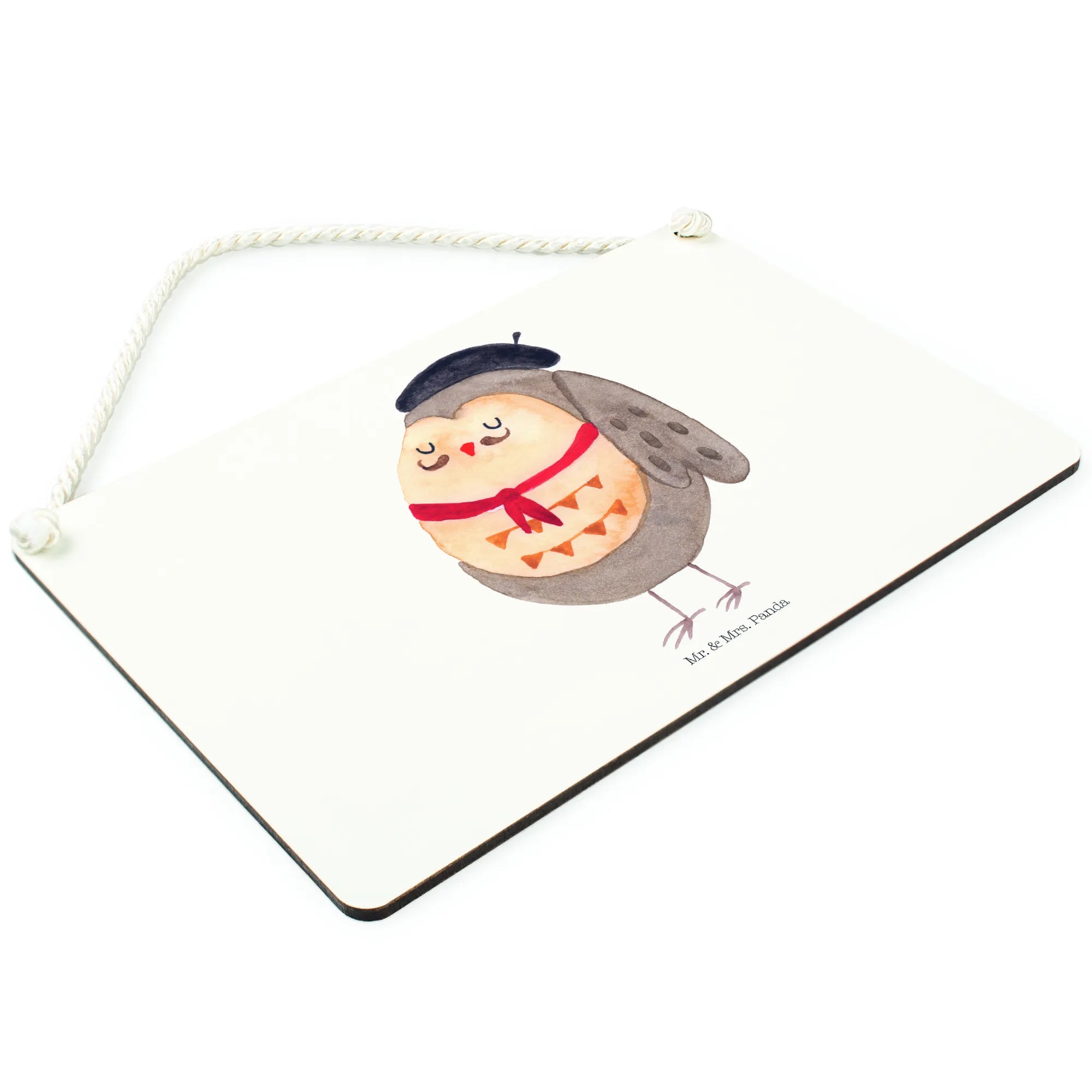 Entdecke unser zauberhaftes Deko Schild Eule Französisch von Mr. & Mrs. Panda! Dieses einzigartige Schild kombiniert stilvolles Design mit einem charmanten Motiv, das dir stets ein Lächeln ins Gesicht zaubert.
