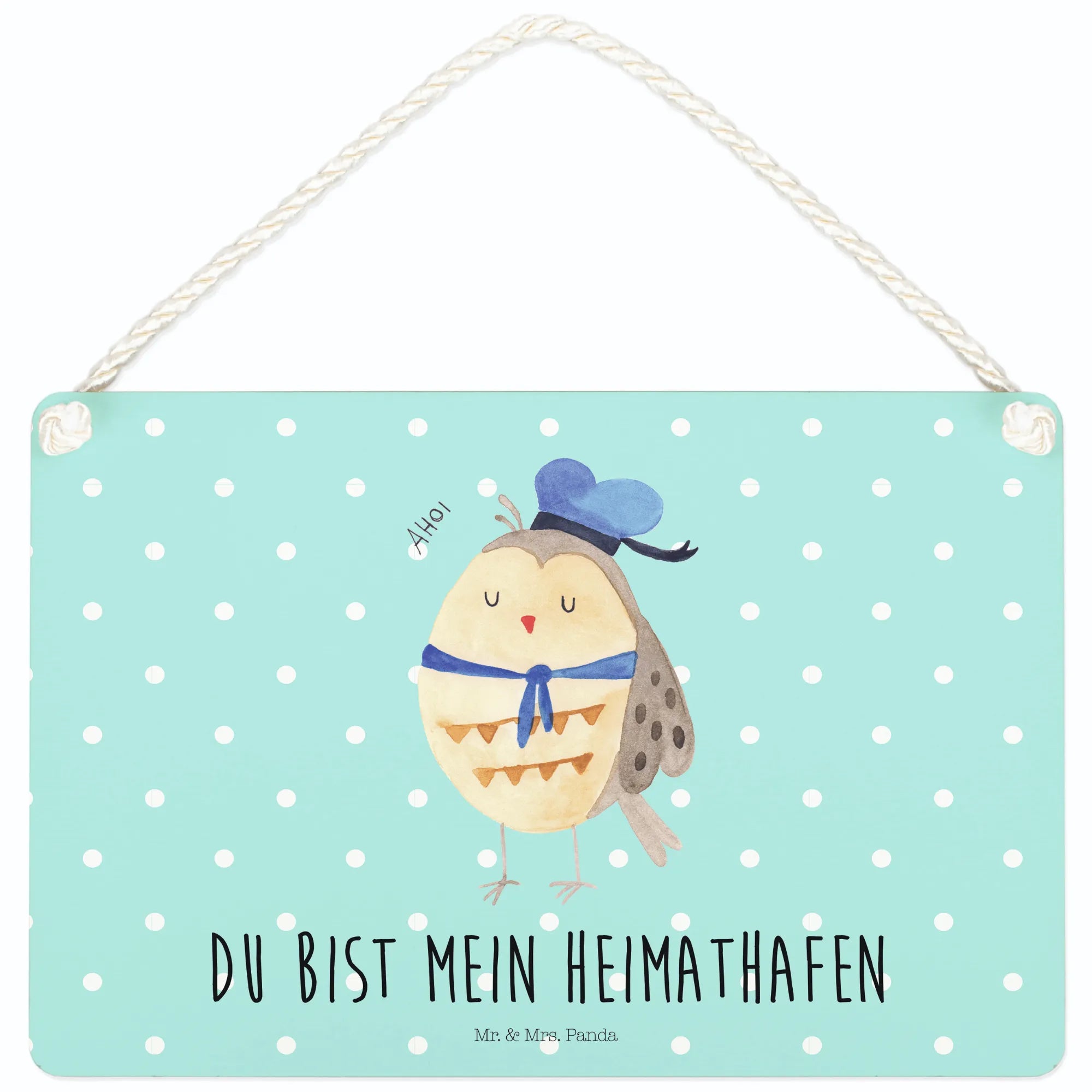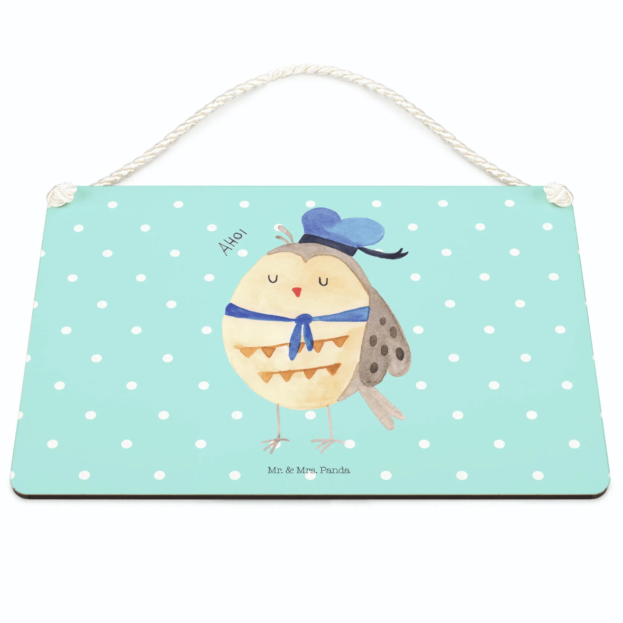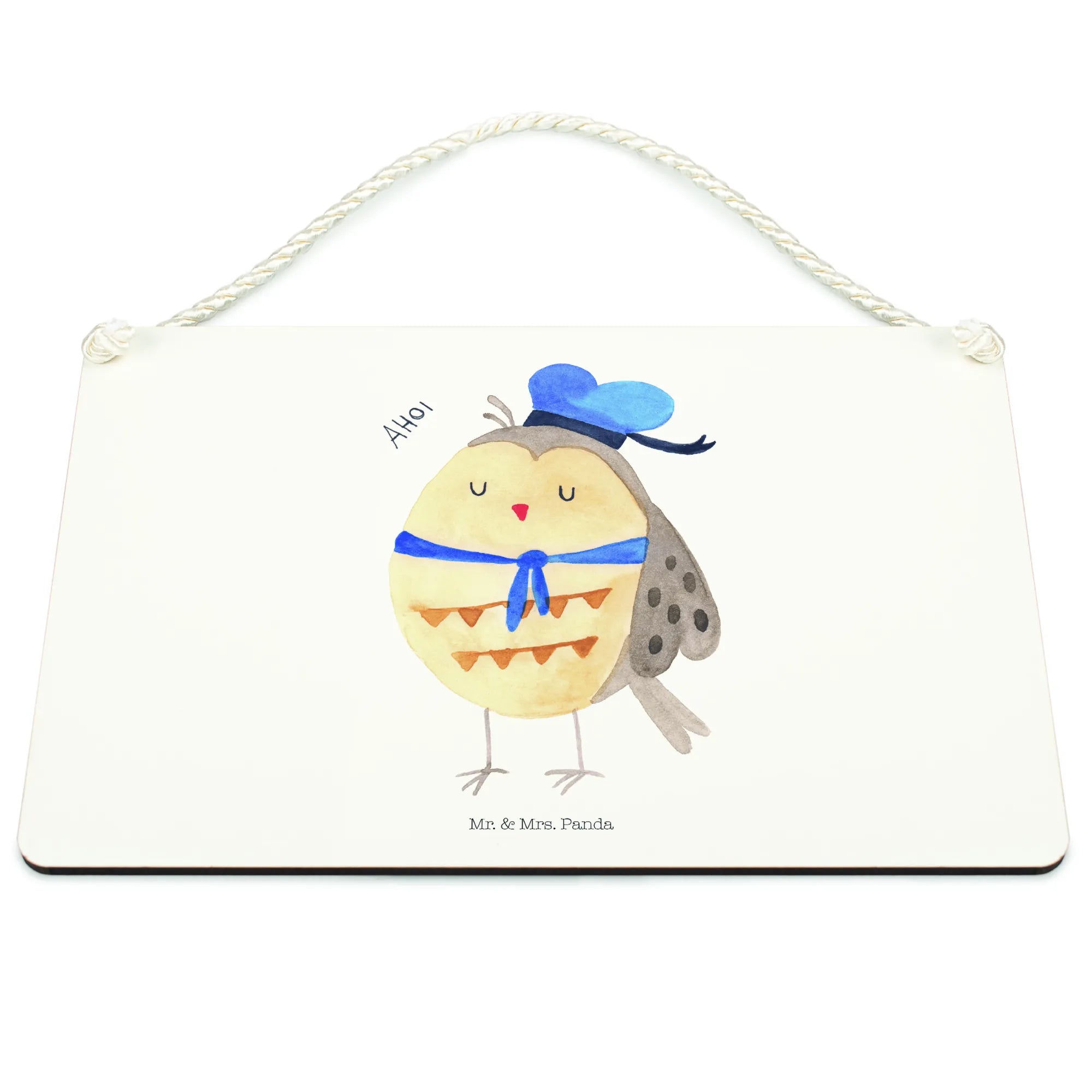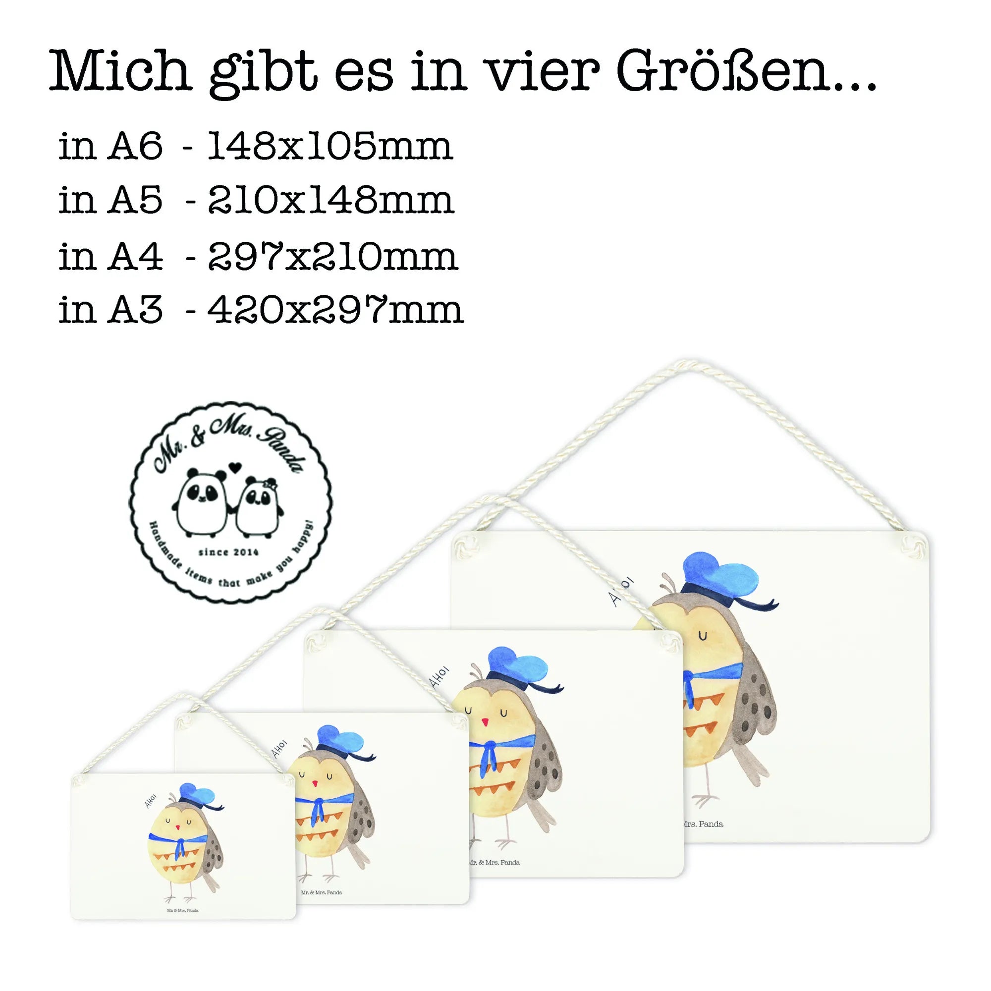 Das Deko Schild 'Eule Matrosen' von Mr. & Mrs. Panda ist das perfekte Geschenk für alle Eulenliebhaber und Deko-Fans! Mit einem liebevoll gestalteten Motiv, das eine niedliche Eule im Matrosenhut zeigt, bringt es einen Hauch von maritimer Stimmung in jedes Zuhause.