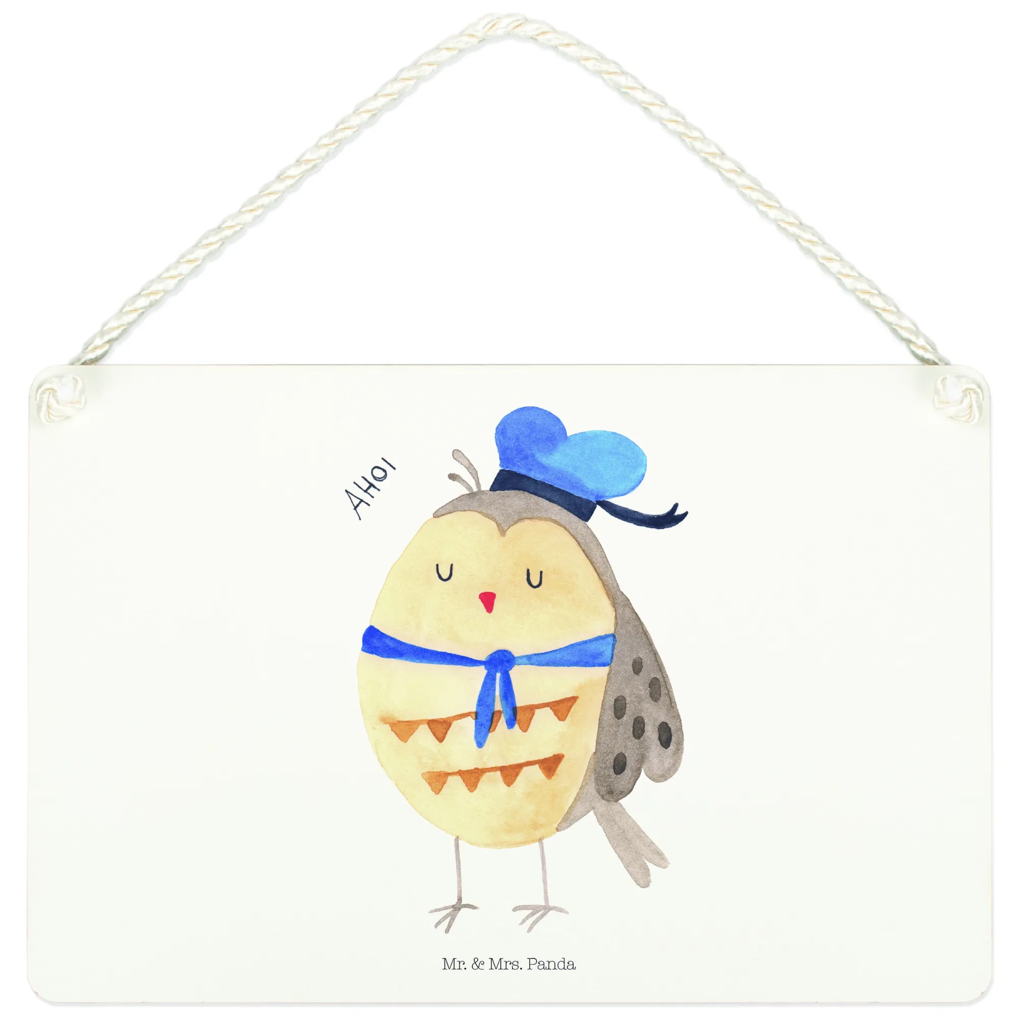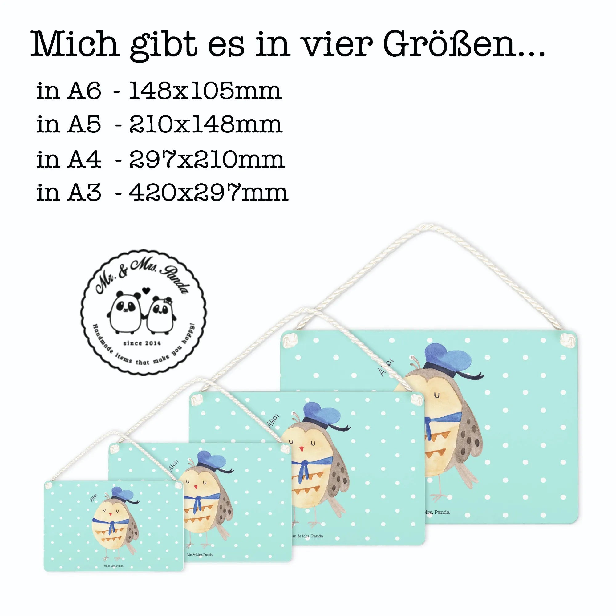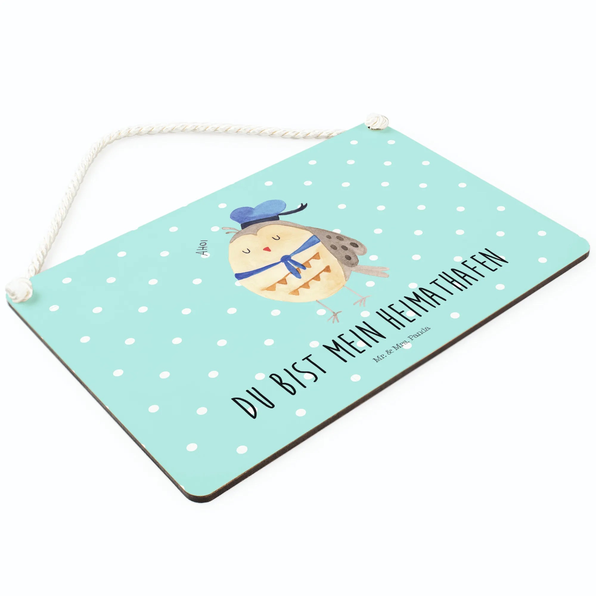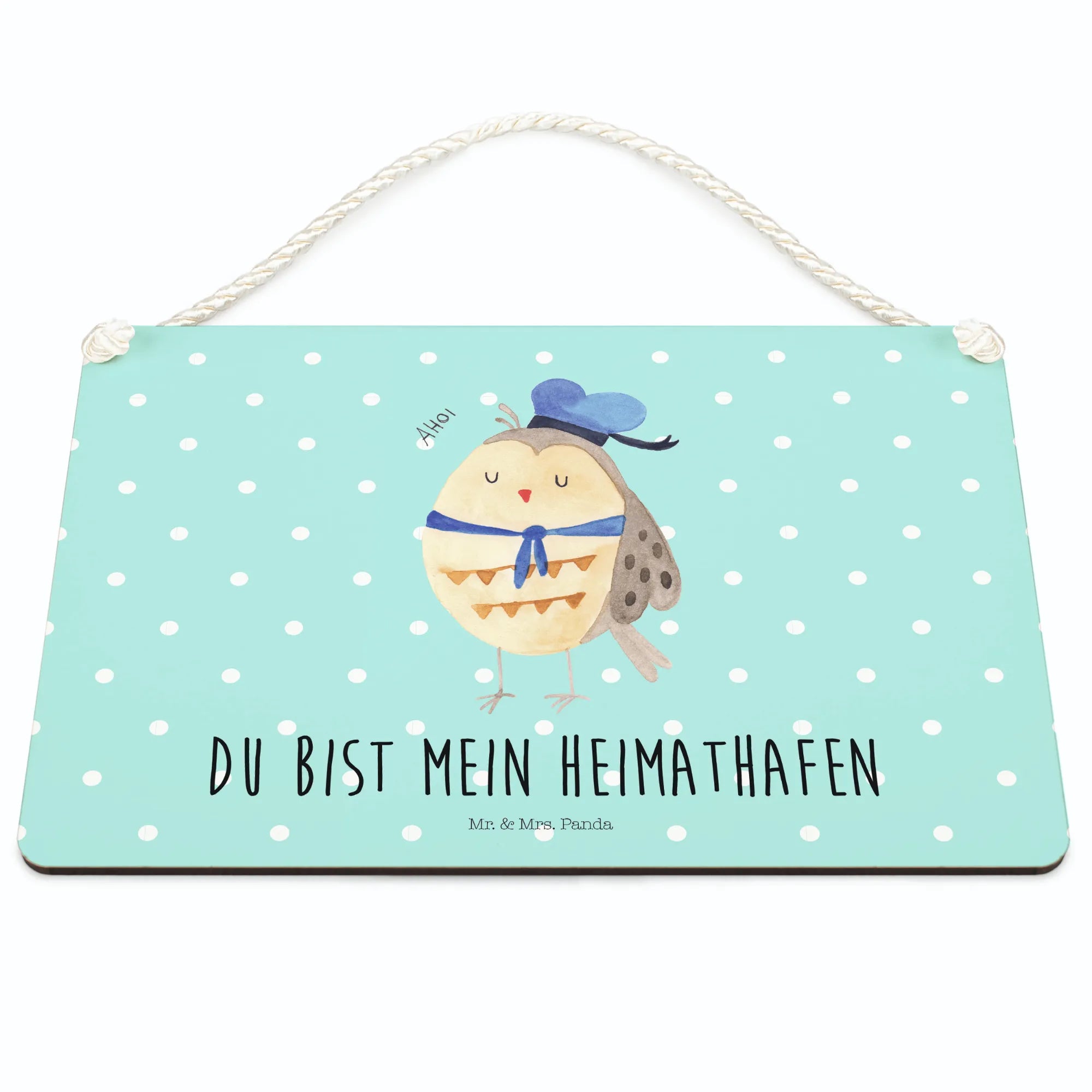 Das Deko Schild 'Eule Matrosen' von Mr. & Mrs. Panda ist das perfekte Geschenk für alle Eulenliebhaber und Deko-Fans! Mit einem liebevoll gestalteten Motiv, das eine niedliche Eule im Matrosenhut zeigt, bringt es einen Hauch von maritimer Stimmung in jedes Zuhause.