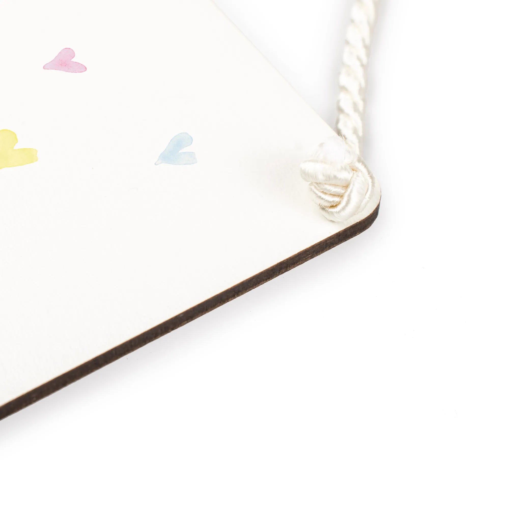 Mit der speziell gedrehten Kordel ist das Schild einfach aufzuhängen und wird schnell zum Blickfang Deines Zuhauses.