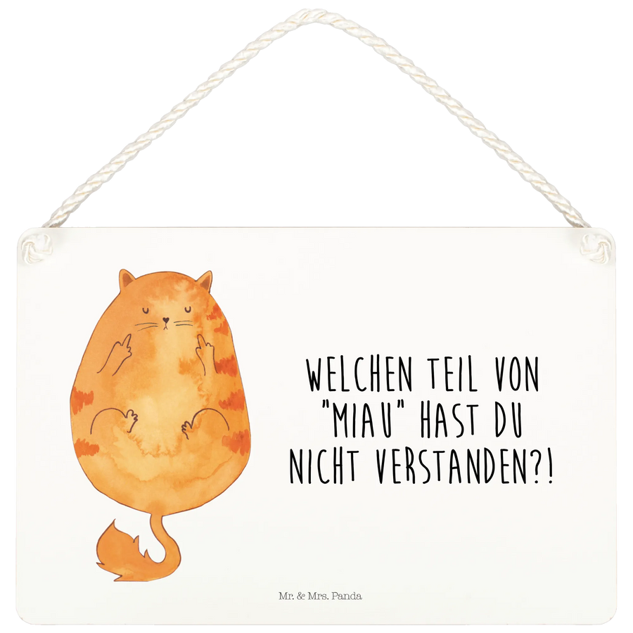 Entdecke unser Deko Schild "Katze Mittelfinger" aus der exklusiven Katzen - Kollektion von Mr. & Mrs. Panda! Dieses entzückende Schild ist mehr als nur ein einfacher Wandschmuck, es ist ein Ausdruck deines Katzenliebhaber-Herzens. Mit dem frechen Motiv einer Katze, die ihren kleinen Mittelfinger zeigt, und dem lustigen Spruch "Welchen Teil von 'Miau' hast du nicht verstanden?!", zaubert es jedem ein Lächeln ins Gesicht.