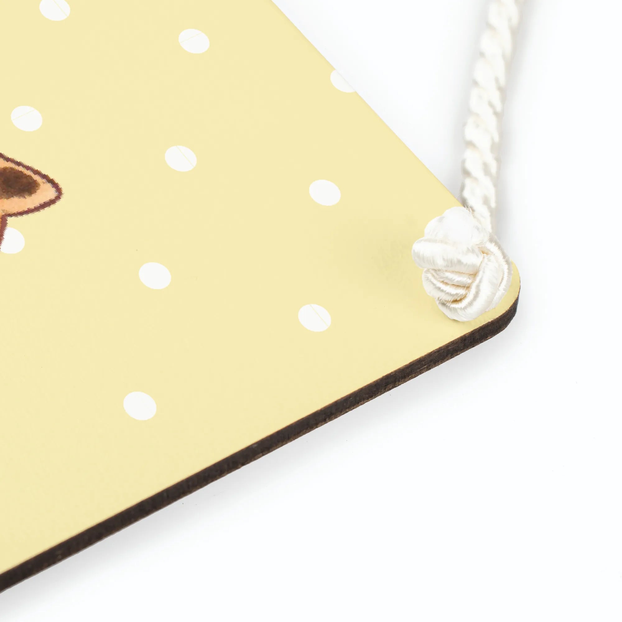 Die Verwendung von MDF als Material sorgt für Ökologie und Langlebigkeit – sowohl für unsere Umwelt als auch für dein Zuhause. Feine Details und eine lebendige Farbauswahl machen unser Schild zu einem stilvollen Accessoire, das in jeder Wohnung seinen Platz findet. Die Kordel zur Aufhängung ist nicht nur praktisch, sondern verleiht dem Schild auch einen zusätzlichen, liebevollen Touch.