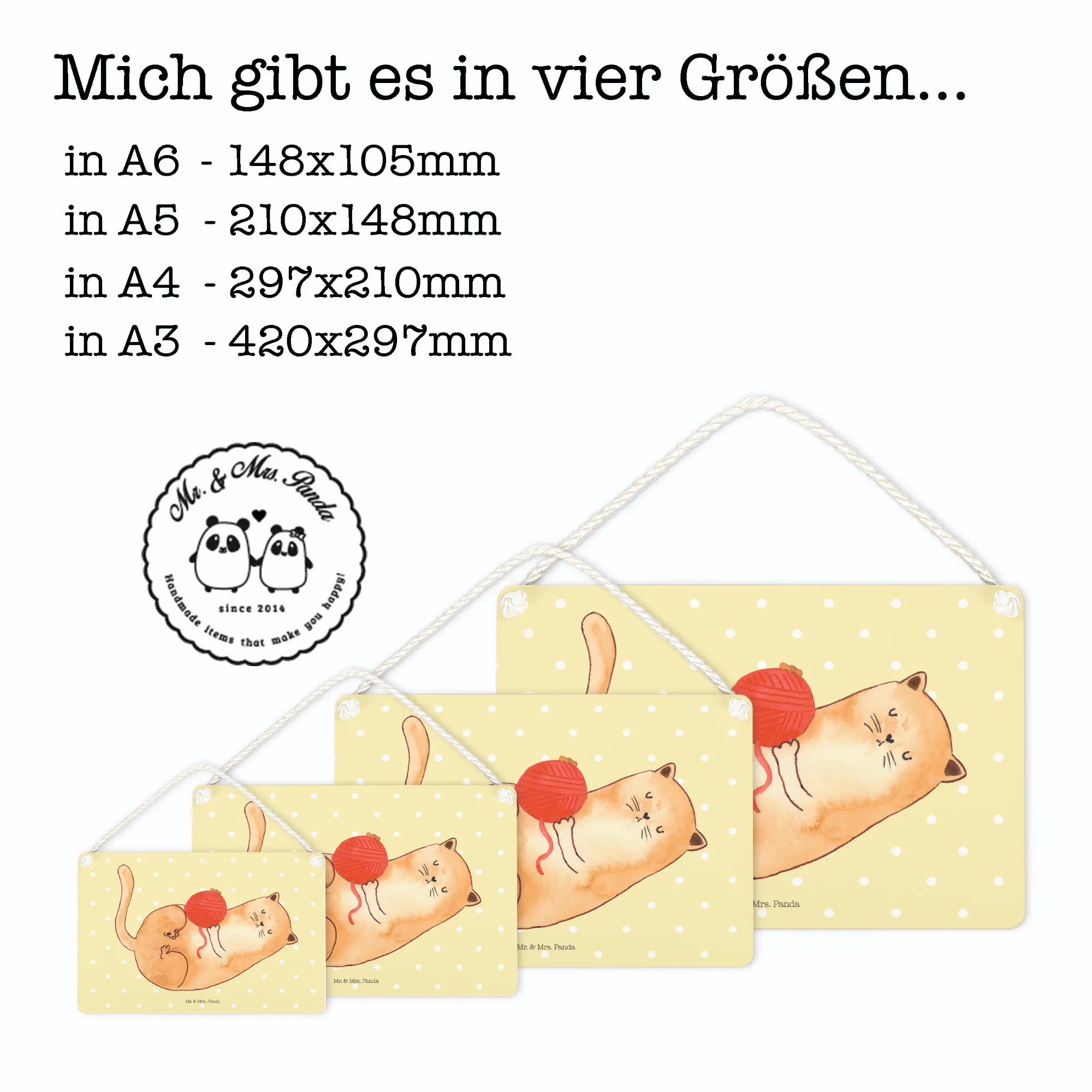 Ob in der Eingangstür, im Wohnzimmer oder als Teil deiner Katzendeko - dieses Deko Schild zieht in jeden Raum die Blicke auf sich. Hergestellt aus hochwertiger, beschichteter Holzfaser, sorgt es für Langlebigkeit und Beständigkeit. Die edlen Drucke sind langlebig und werden dir lange Freude bereiten. Mit der liebevoll gedrehten Kordel ist das Aufhängen kinderleicht.
