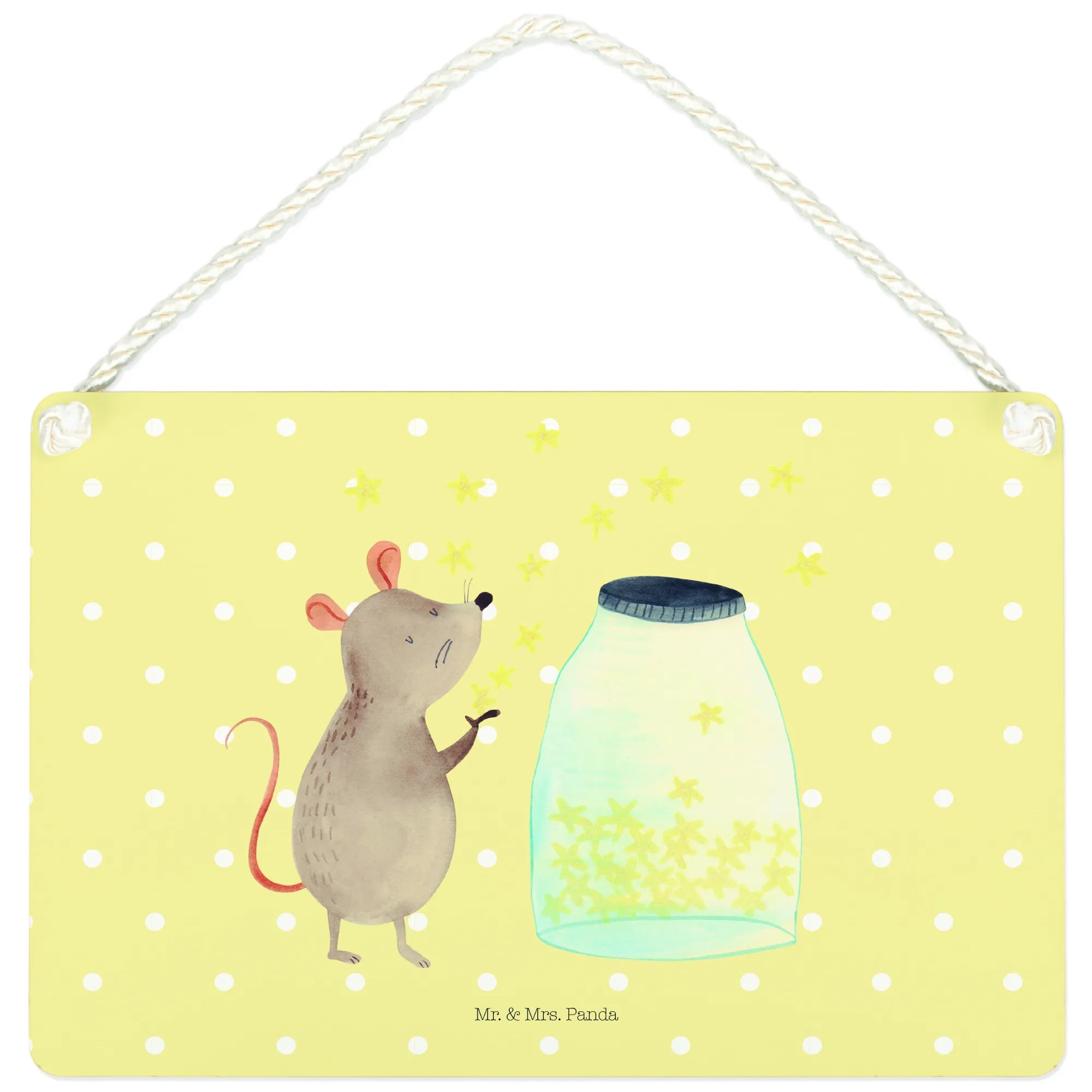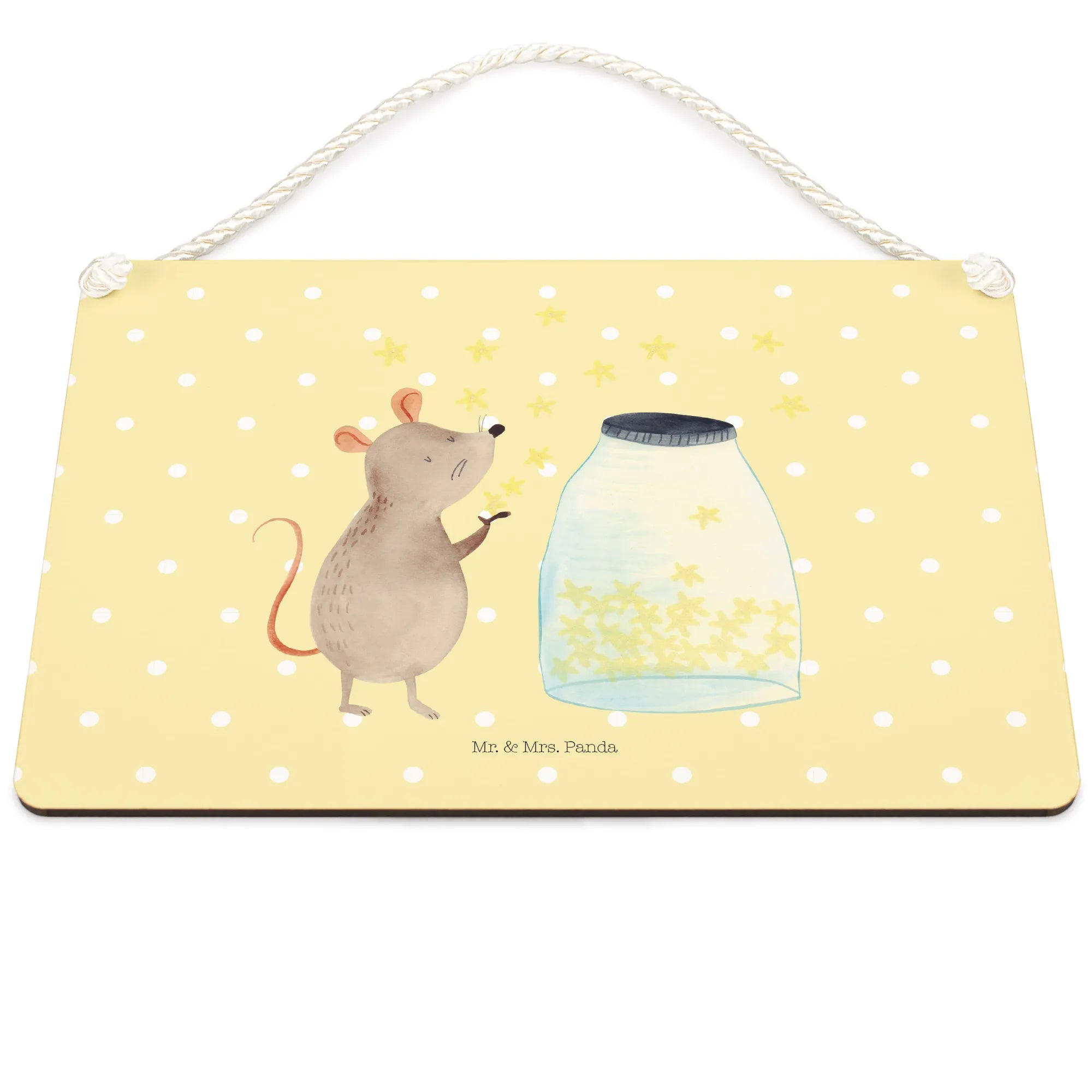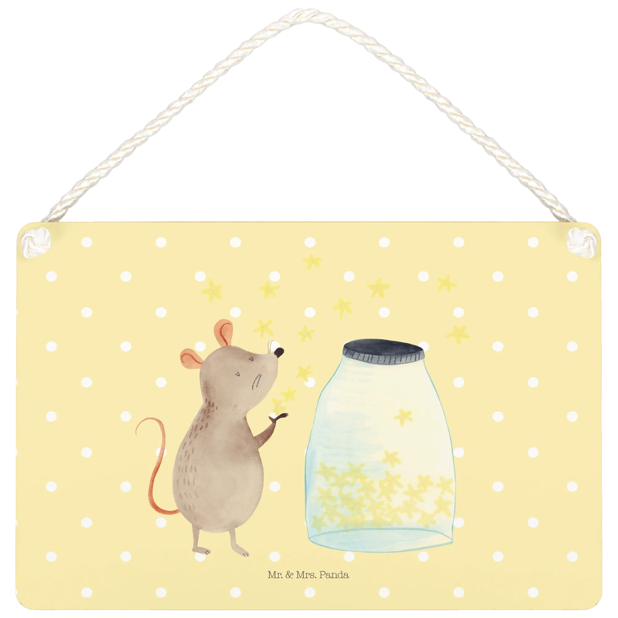Deko Schild Maus Sterne - DIN A5 - mit Spruch - Gelb Pastell