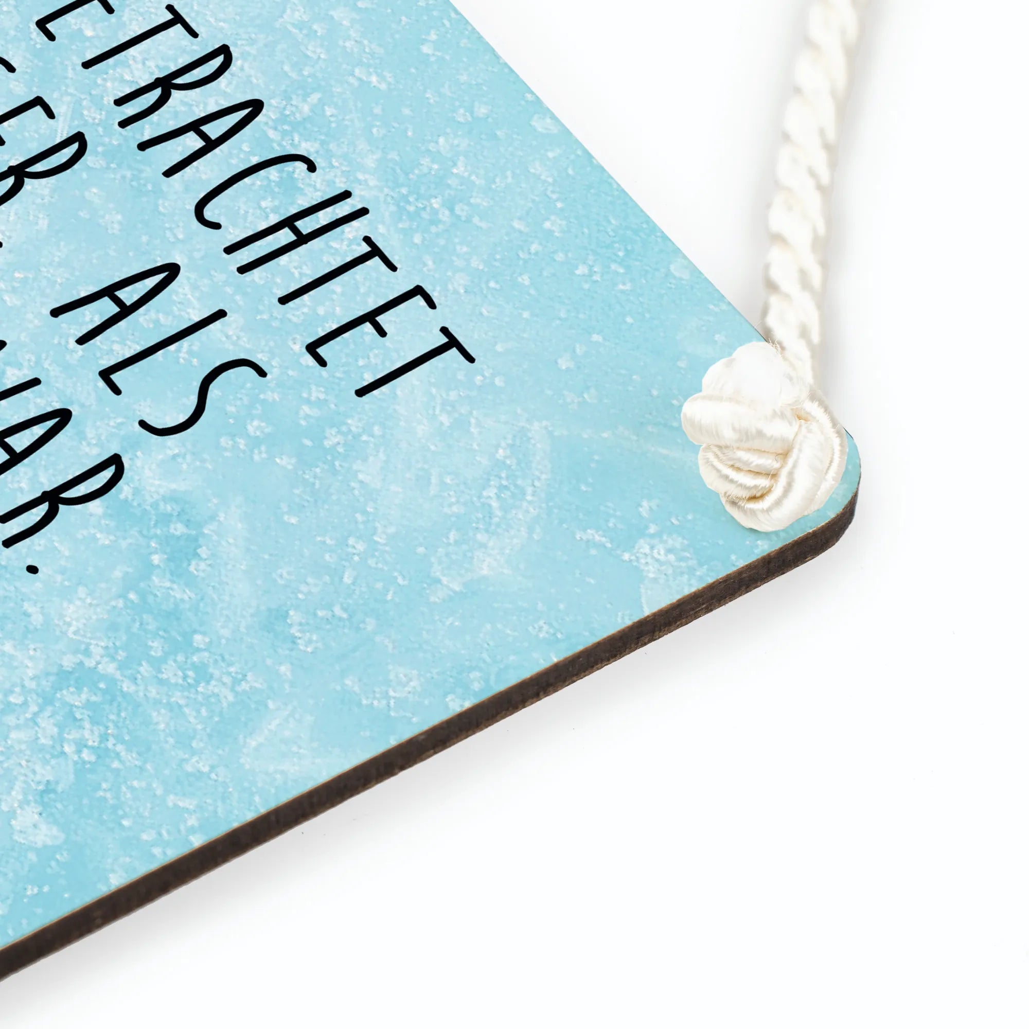Ob als Geschenk oder für die eigene Wohnung, dieses Deko Schild ist ein echter Hingucker! Das pflegeleichte Material aus beschichteter Holzfaser sorgt dafür, dass du lange Freude an deiner Wanddeko haben wirst. Mit einer wunderschönen Kordel lässt sich das Schild kinderleicht aufhängen und passt perfekt an die Tür oder an die Wand.