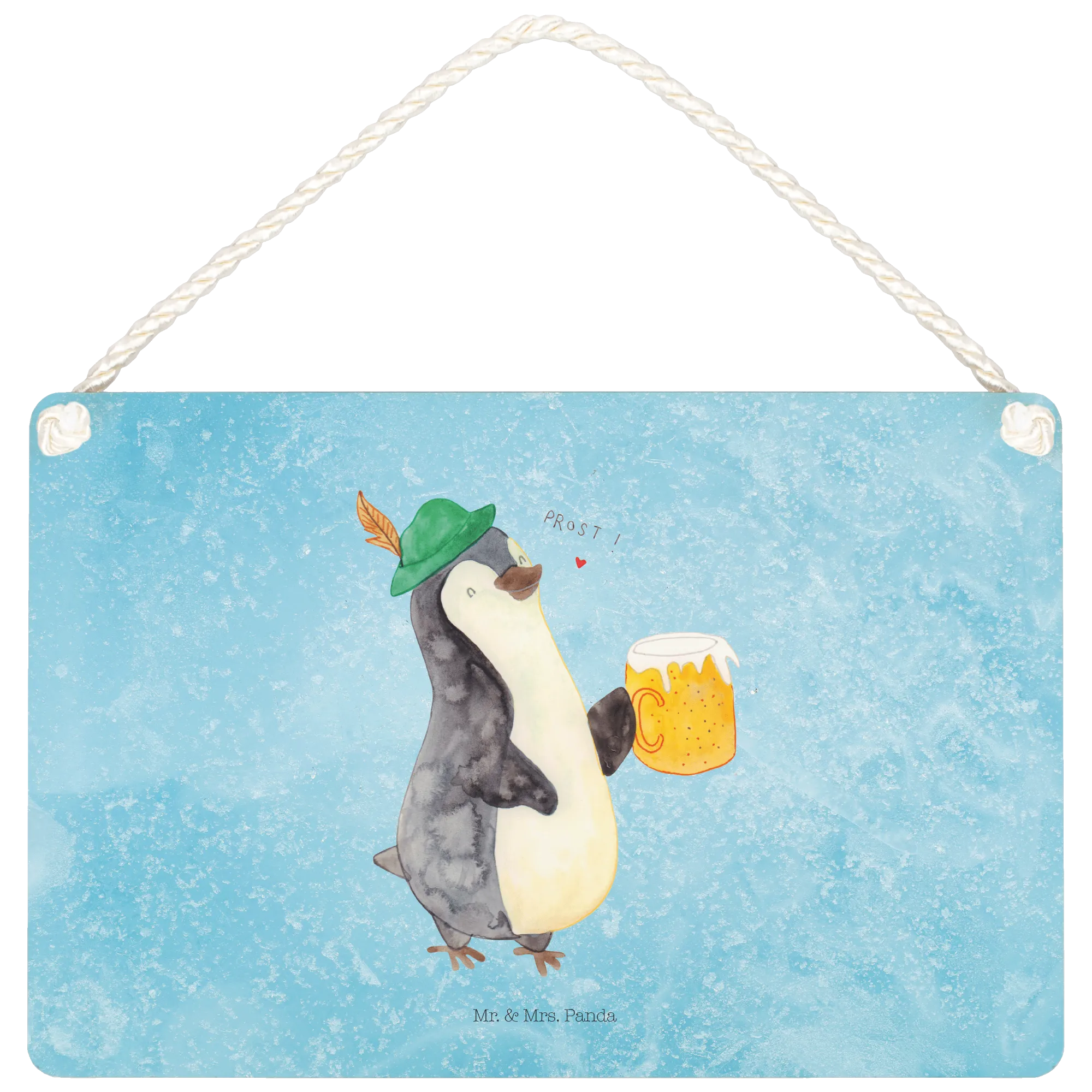 Mit dem niedlichen Pinguin in traditioneller Tracht und einem Maß Bier in der Hand bringt dieses Schild sofort gute Laune in jedes Zuhause. Es eignet sich hervorragend als Türschild oder Wandschild und verleiht jedem Raum einen charmanten Akzent.