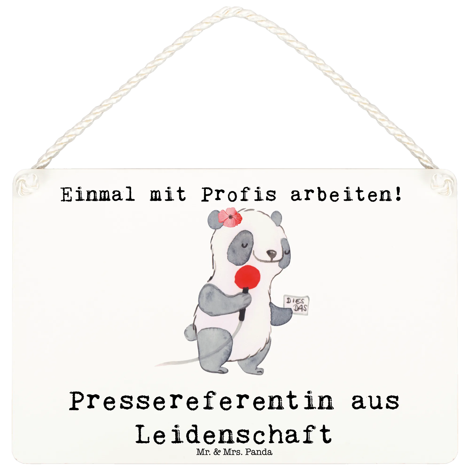 Das Deko Schild "Pressereferentin aus Leidenschaft" von Mr. & Mrs. Panda ist das perfekte Geschenk für jeden, der im Bereich Kommunikation und Presse tätig ist und diesen interessanten Beruf mit Begeisterung ausübt. Ob du es als Dankeschön für eine tolle Kollegin oder als süßes Andenken zum Berufsabschied verschenken möchtest, dieses Holzschild ist immer eine willkommene Überraschung.