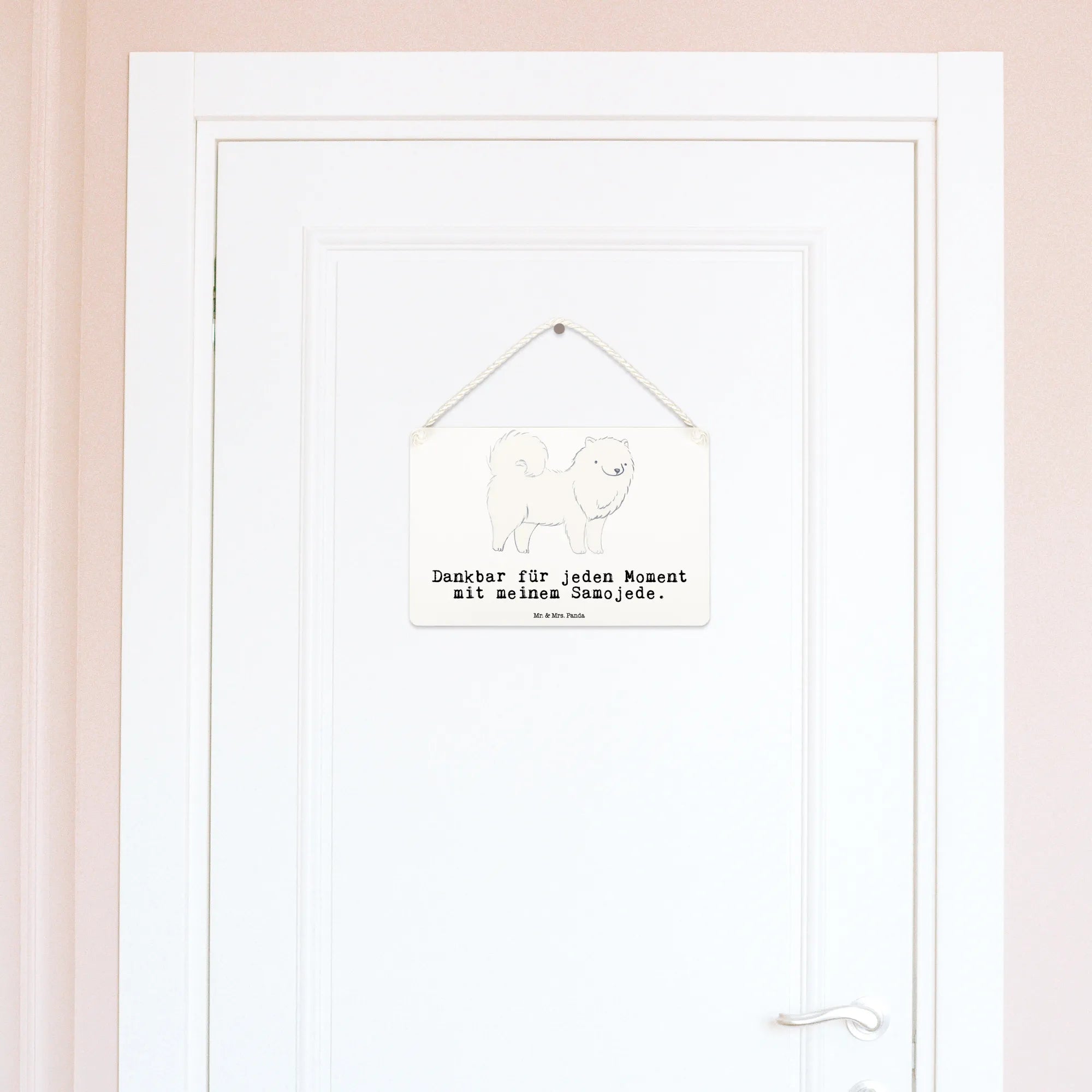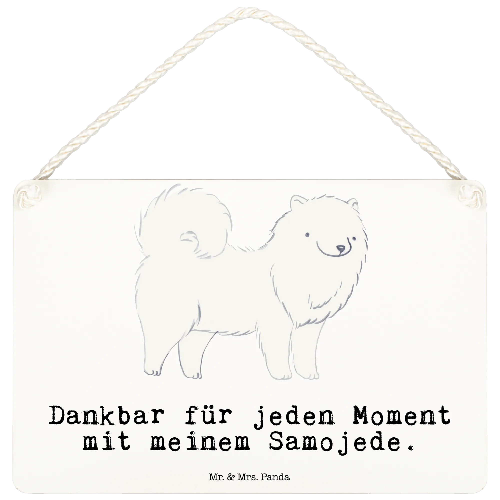 Das Deko Schild "Samojede Moment" von Mr. & Mrs. Panda ist das perfekte Geschenk für alle Hundeliebhaber und Samojede-Besitzer! Mit seinem liebevollen Design und dem süßen Spruch "Dankbar für jeden Moment mit meinem Samojede" bringt dieses Schild genau die richtige Portion Freude in dein Zuhause.