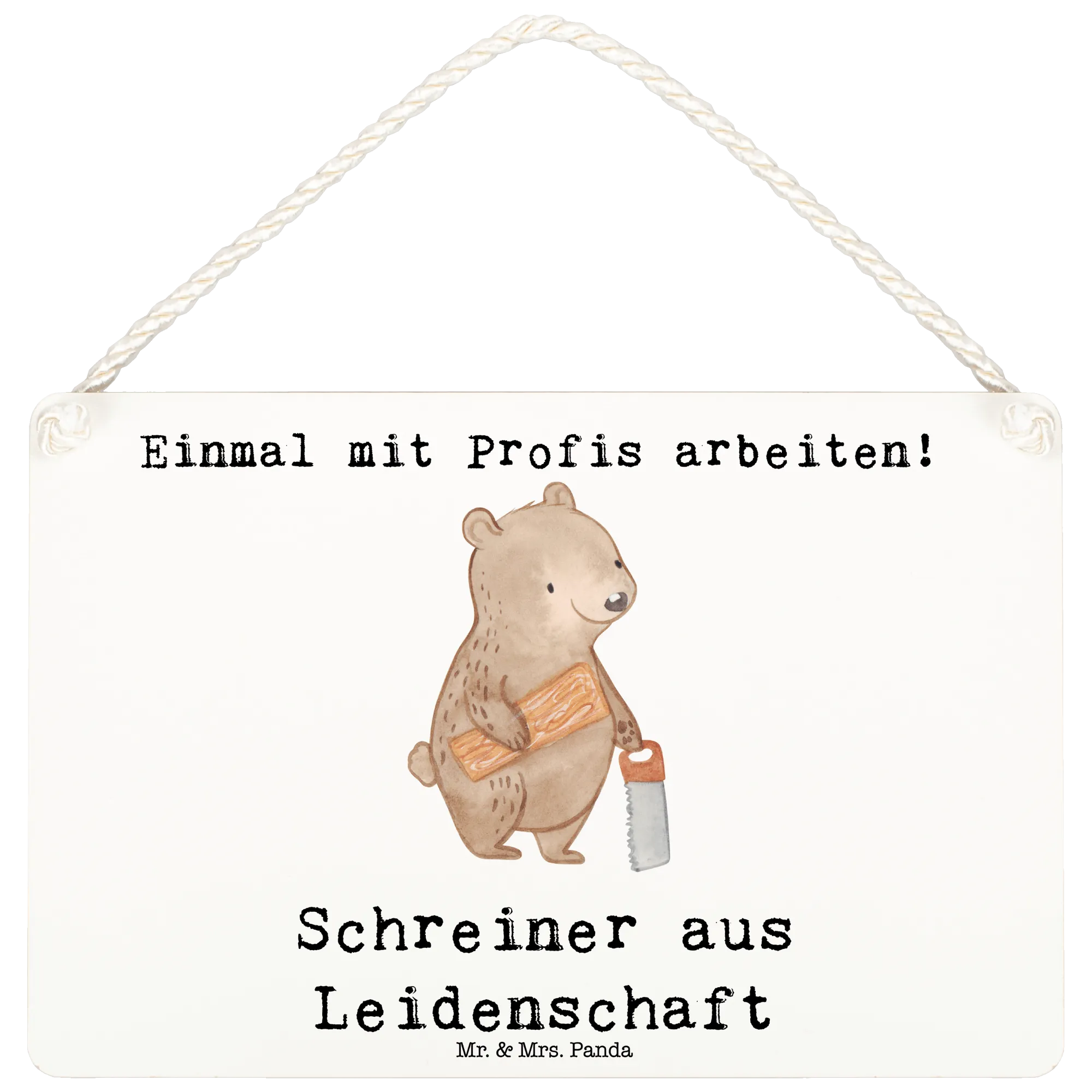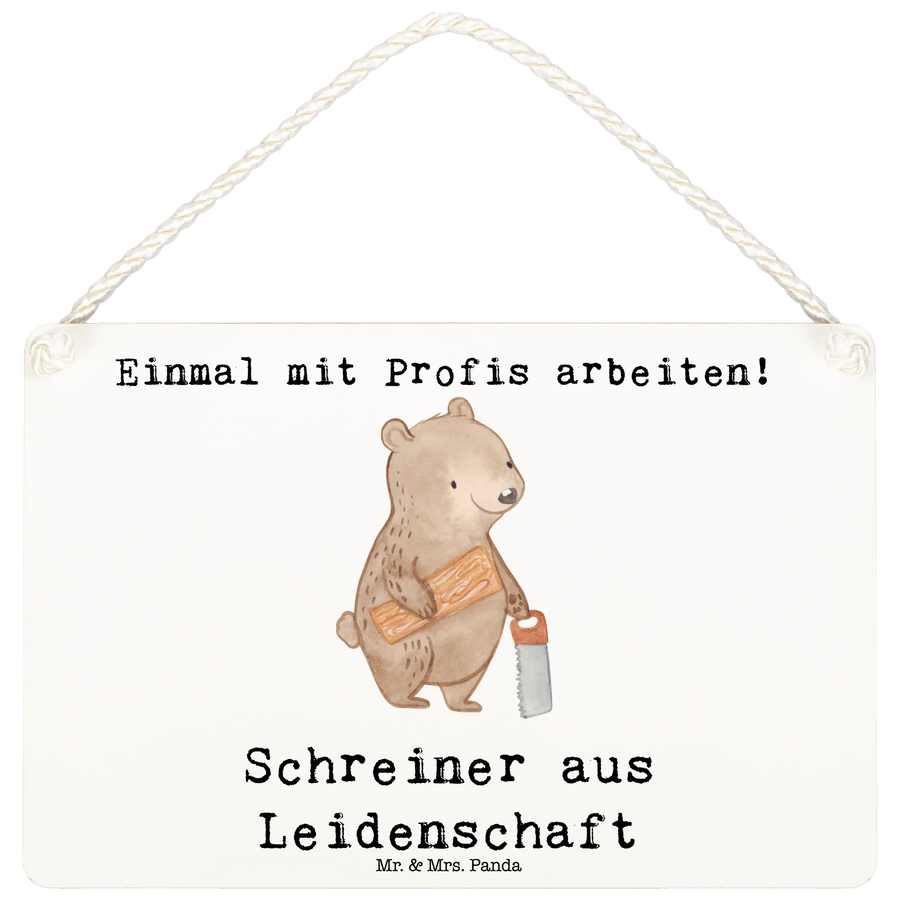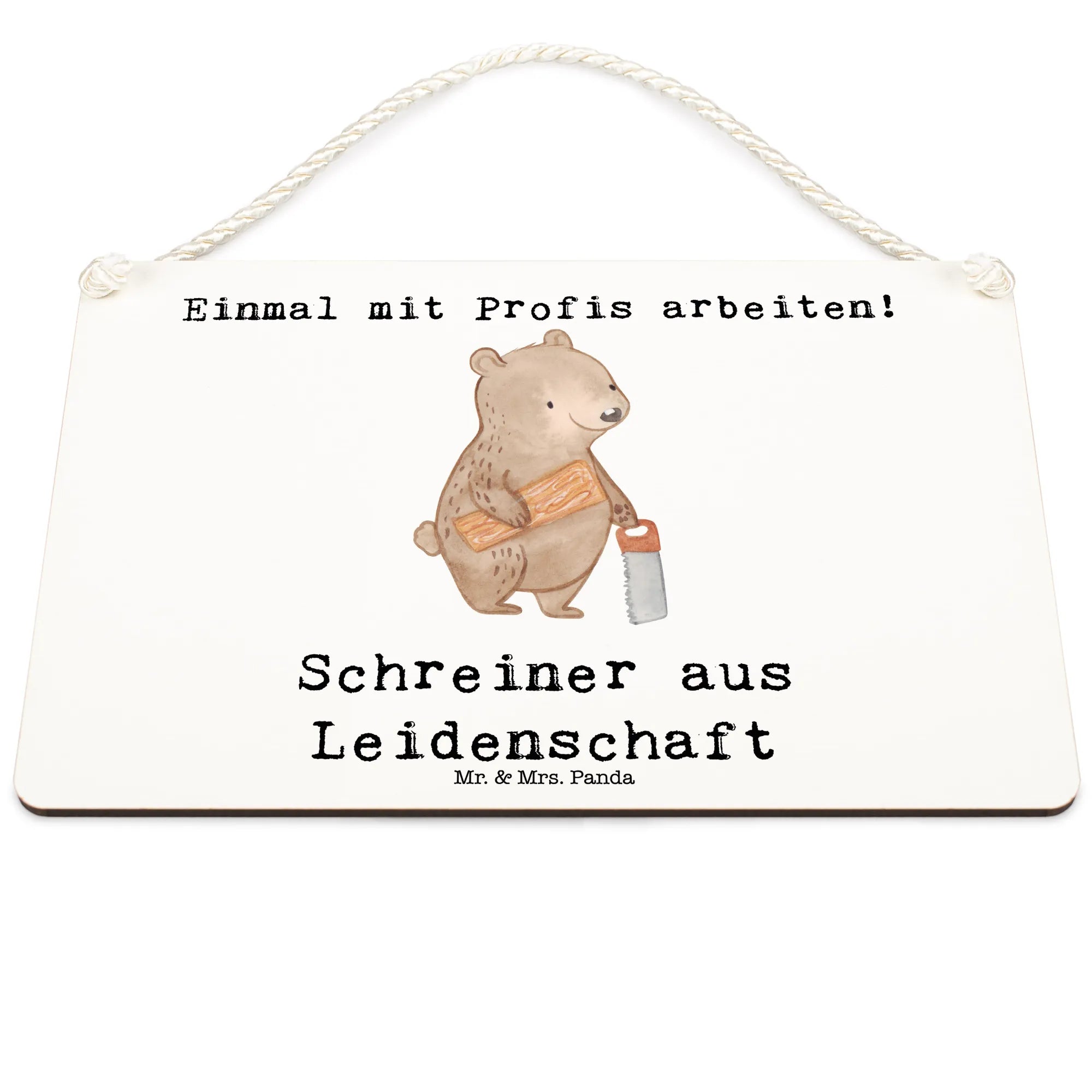 Mit seiner edlen Optik und der praktischen gedrehten Kordel zur Aufhängung ist das Deko Schild „Schreiner aus Leidenschaft“ ein liebevolles, stilvolles Geschenk aus der Berufe Kollektion von Mr. & Mrs. Panda.