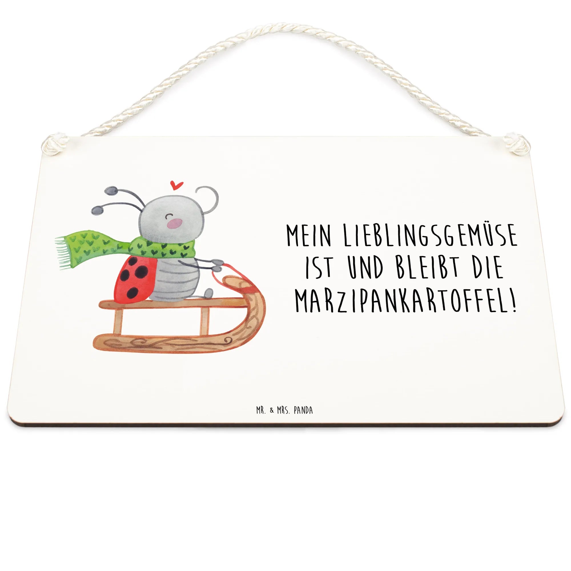 Es eignet sich perfekt für alle, die den Winter und die Zeit rund um Weihnachten lieben. Mit dem Spruch "Mein Lieblingsgemüse ist und bleibt die Marzipankartoffel!" bringt das Schild gleichzeitig Humor und Wärme in dein Zuhause.