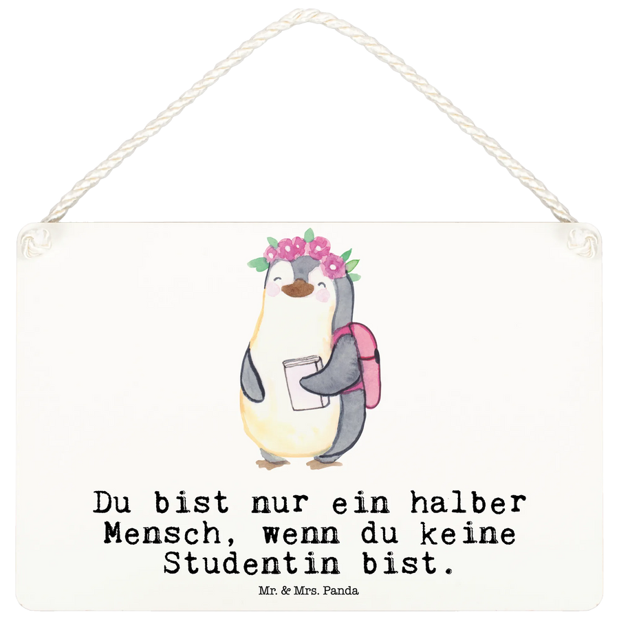 Entdecke unser wunderschönes Deko Schild 'Studentin mit Herz' aus der bezaubernden Berufe Kollektion von Mr. & Mrs. Panda! Dieses liebevoll gestaltete Wunschmotiv zeigt einen süßen Pinguin, der mit einem Rucksack zur Uni unterwegs ist und den Slogan 'Du bist nur ein halber Mensch, wenn du keine Studentin bist.'